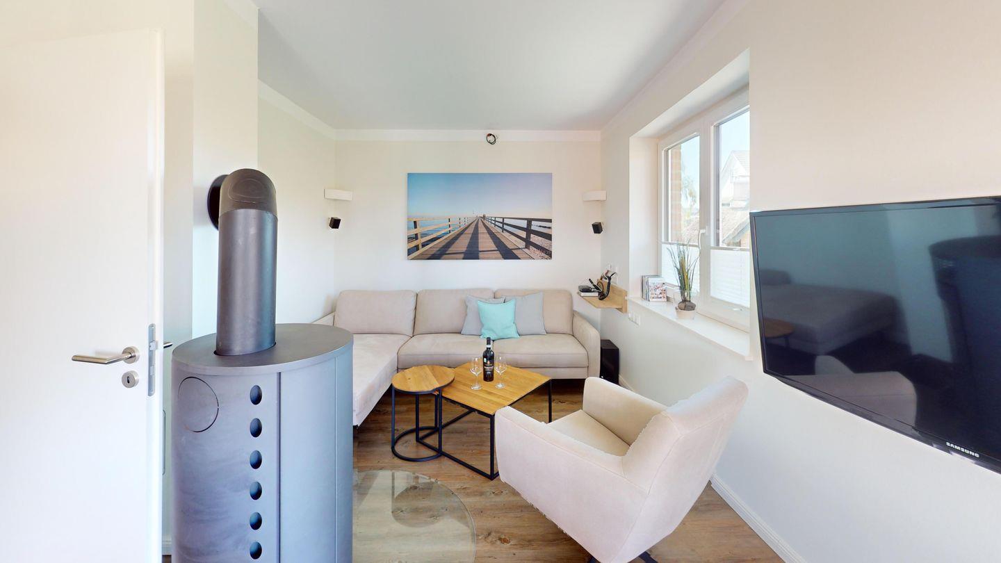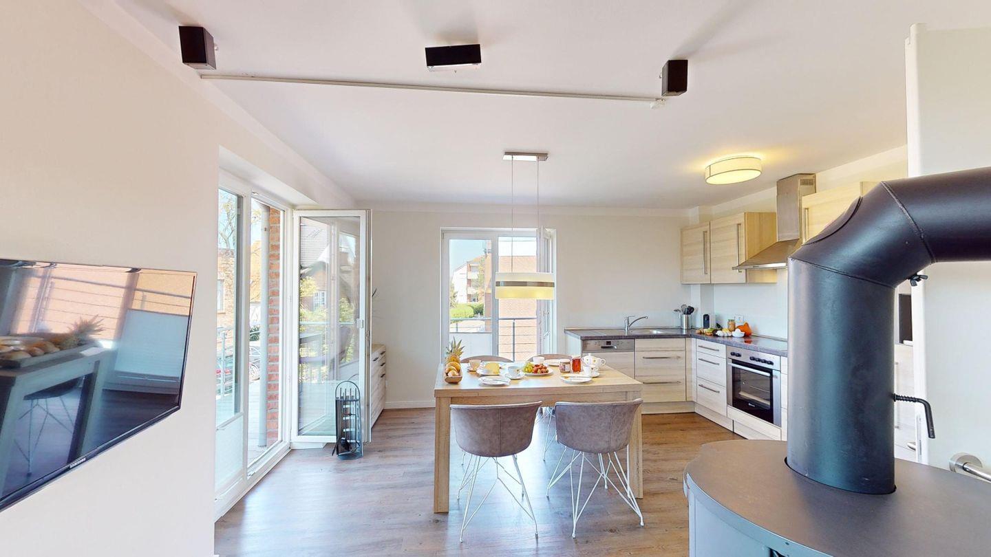 Moderne Ferienwohnung in Grömitz mit Dachterrasse, Sauna und Kamin nahe Strand.