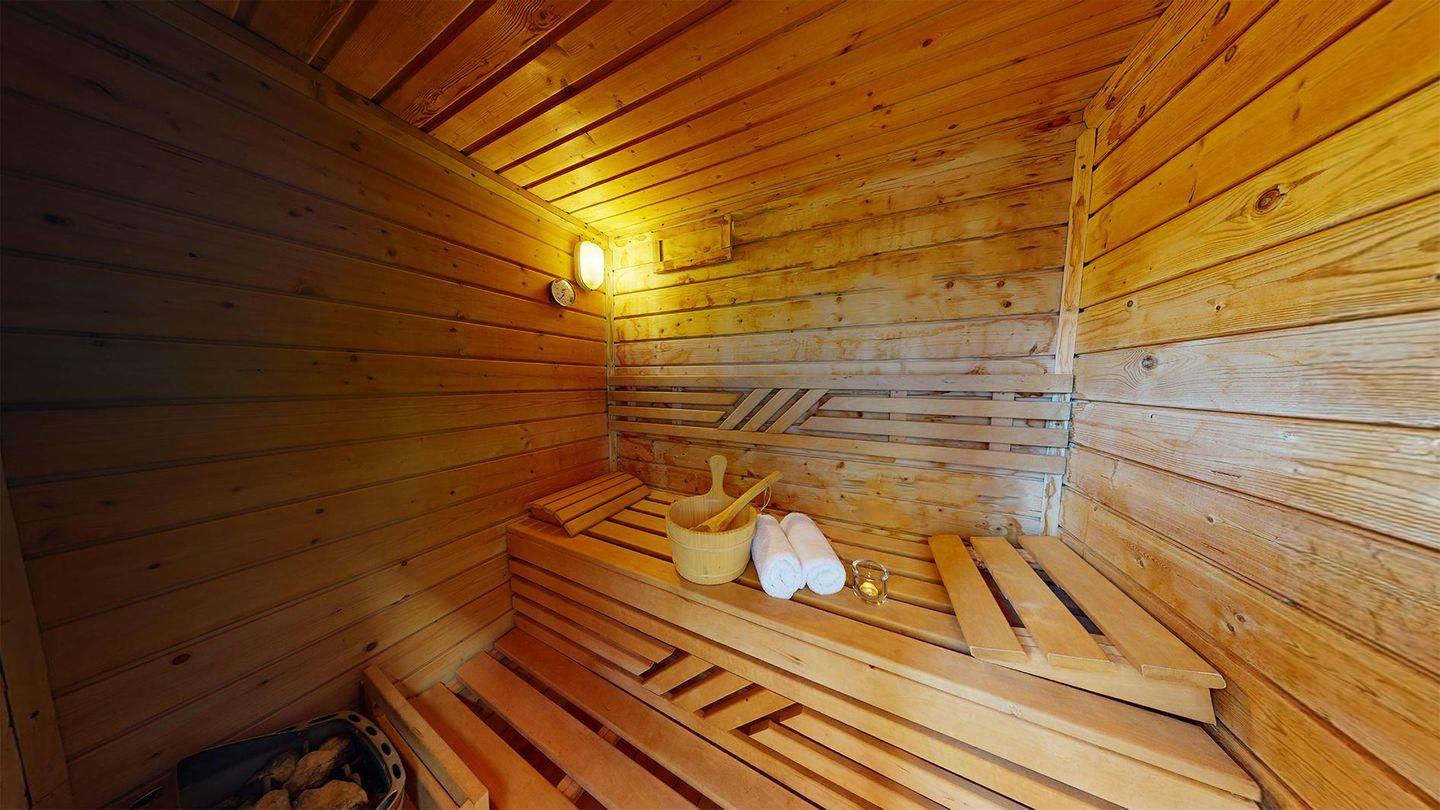 Beide Schlafzimmer sind mit hochwertigen, großen Betten (2 x 2 m), Verdunklungsplissees und Flachbild-Fernseher ausgestattet. Eins der Schlafzimmer hat Zugang zur Dachterrasse mit Saunahaus. Das schöne Badezimmer bietet eine Regendusche und einen großen beleuchteten Wand- und Kosmetikspiegel.