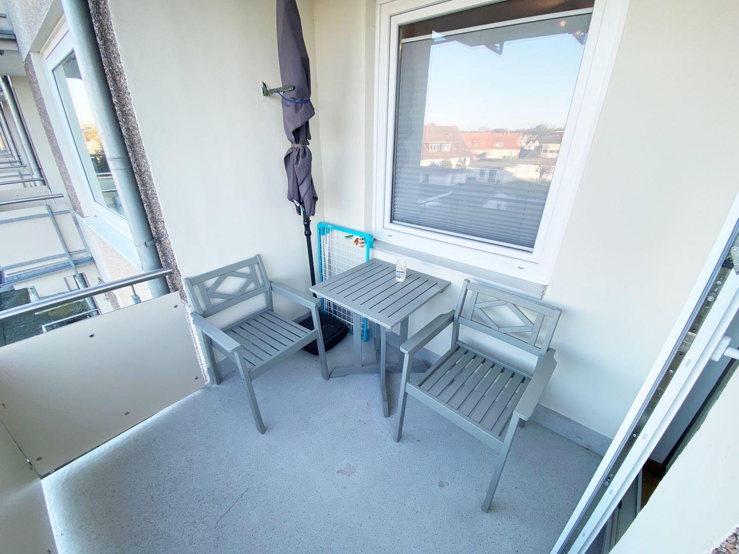 Vom Wohnzimmer gelangen Sie auf dem Balkon, hier können Sie bis in den späten Abend die Sonne genießen.