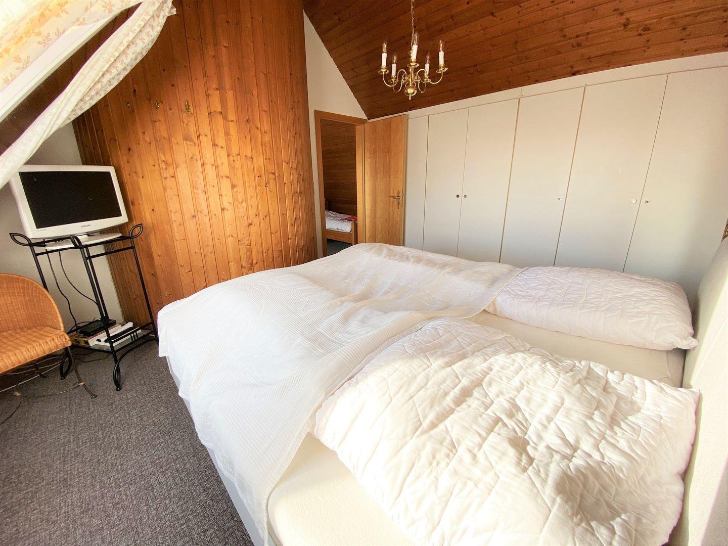 Über eine Wendeltreppe vom Wohnzimmer gelangen Sie auf die zweite Wohnebene mit einem offenem Gästezimmer mit zwei Einzelbetten, Kommode und Verdunkelungsmöglichkeit und separaten Schlafzimmer mit Doppelbett, Kleiderschrank, Flachbildschirm und Verdunkelungsmöglichkeiten.