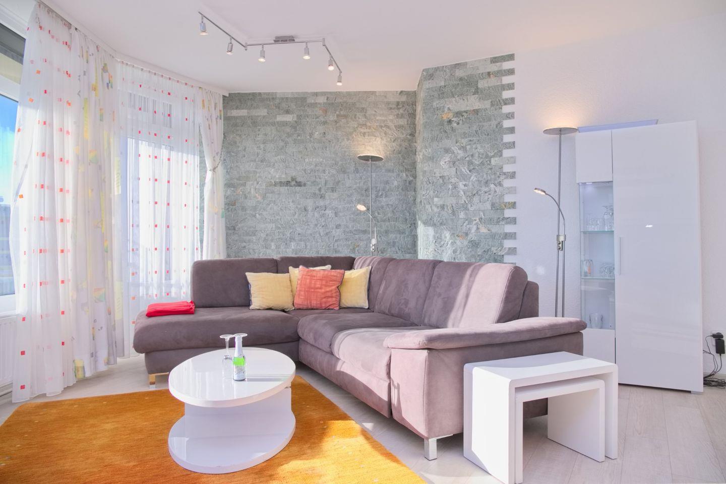 Sehr modern eingerichtete 2-Zimmer-Eckwohnung (ca. 56 m²) für max. 4 Personen in der 7. Etage mit Meerblick und möbliertem Eckbalkon