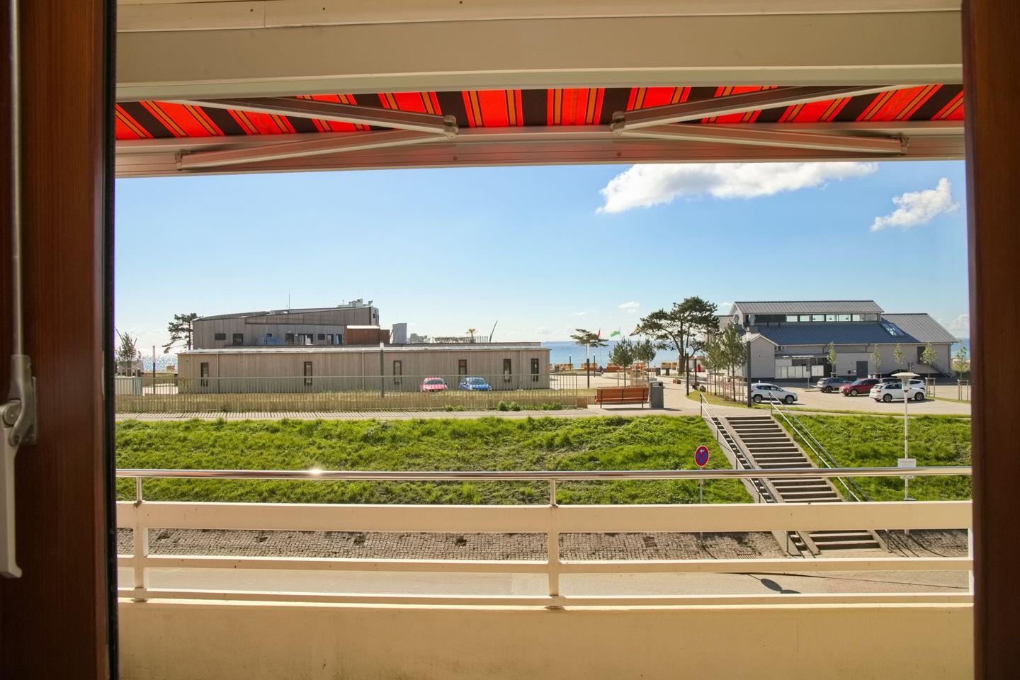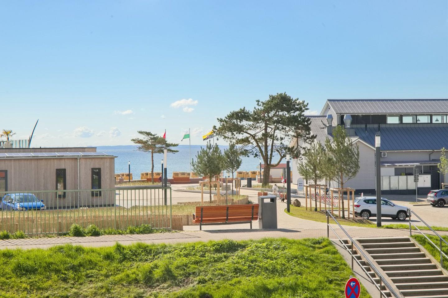 Charmante 2-Zimmer-Ferienwohnung mit Meerblick und Balkon in Grömitz, direkt hinter dem Deich und nahe dem Dünenpark.