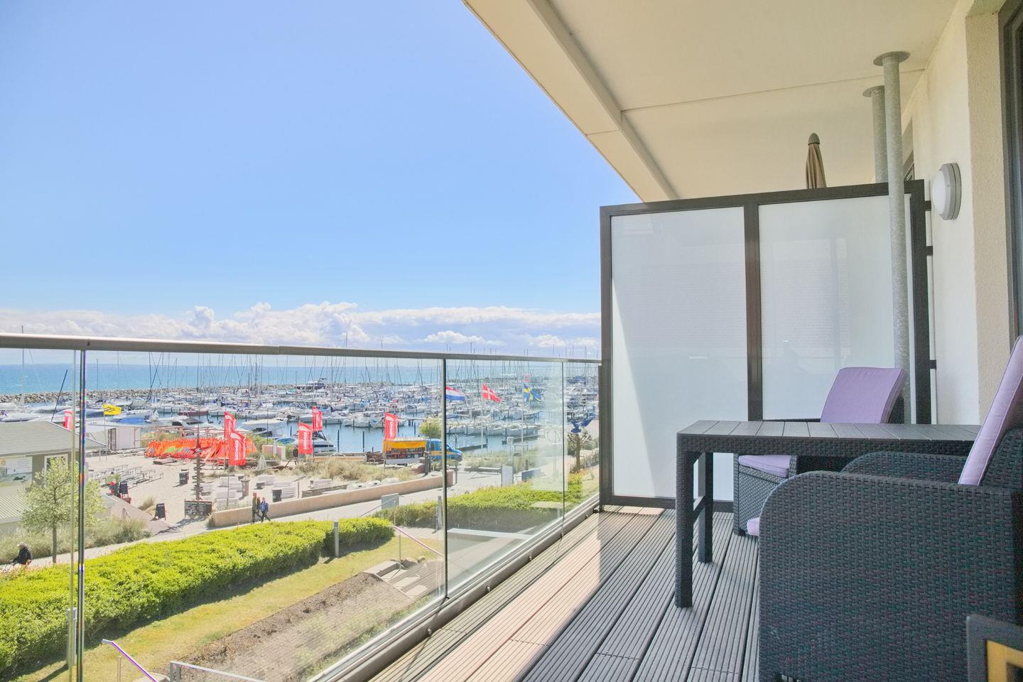 Exklusive, stilvolle Ferienwohnung mit 100% Seeblick und Blick über den Yachthafen von Grömitz mit möblierten Balkon lädt zum entspannen ein.