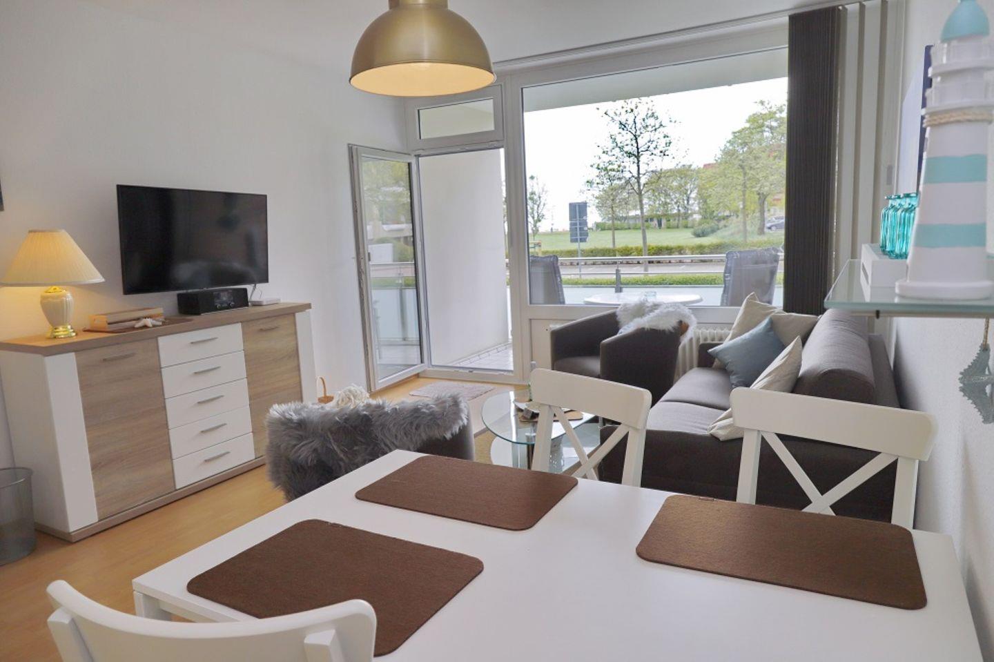 In 2021 renovierte2- Zimmer- Ferienwohnung mit möblierten Balkon, direkt an der weitläufigen Promenade und dem feinsandigen Ostseestrand.