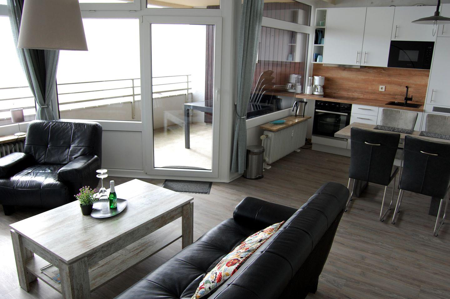Sehr schöne 3 Zimmer Ferienwohnung in der 8. Etage mit möblierten Balkon und Panoramablick über die Lübecker Bucht.Ein Steinwurf bis zur Seebrücke.
