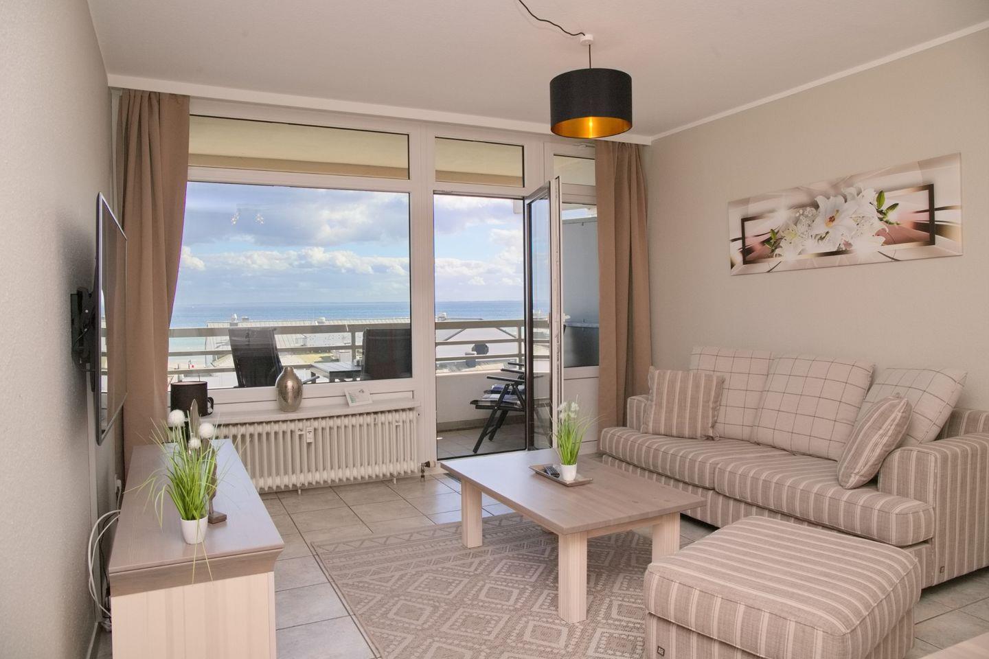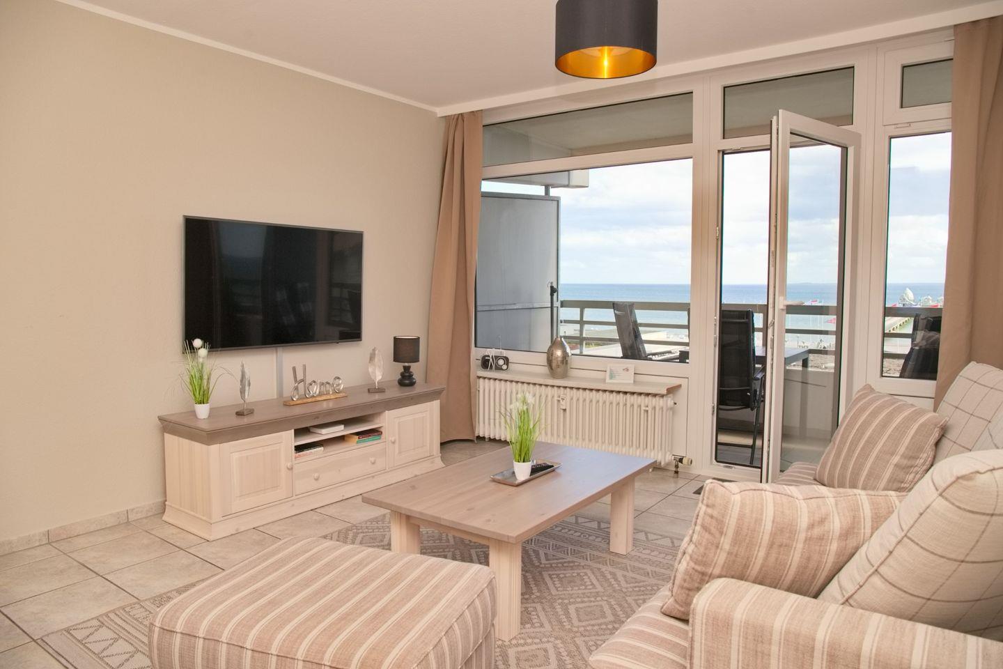 sehr gemütliche 3 Zimmer Ferienwohnung mit möblierten Südbalkon und 100% Seeblick direkt am Seebrückenvorplatz. Direkter Blick auf die Seebrücke.
