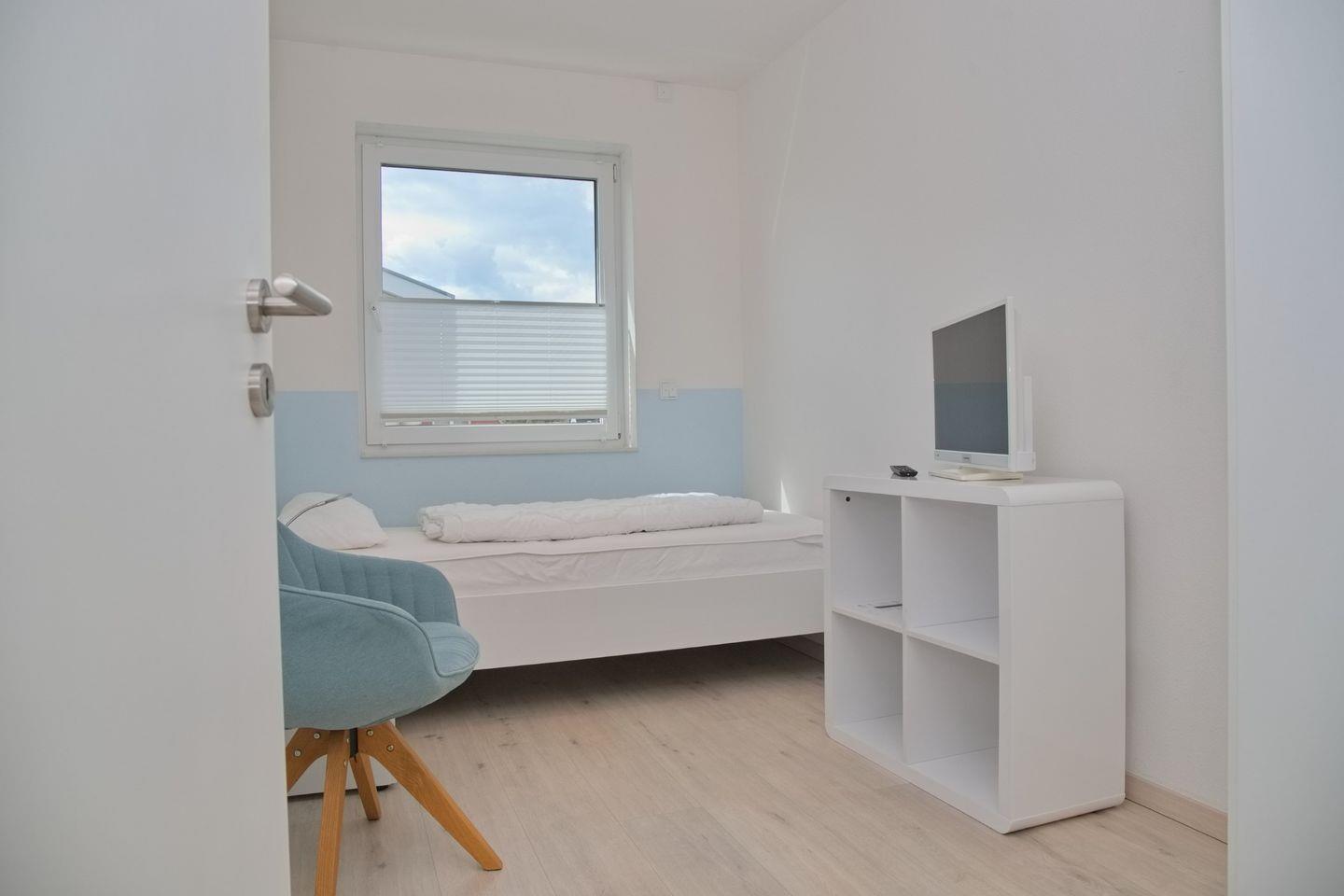 Im Obergeschoss befinden sich zwei weitere Schlafzimmer. Eines ist mit einem Doppelbett und einem Kleiderschrank ausgestattet und hat direkten Zugang zum Balkon. Das andere Zimmer bietet ein 1,40x2,00 m großes Einzelbett, einen Flachbild-TV und einen Kleiderschrank. In beiden Zimmern steht ein kleiner Sessel.