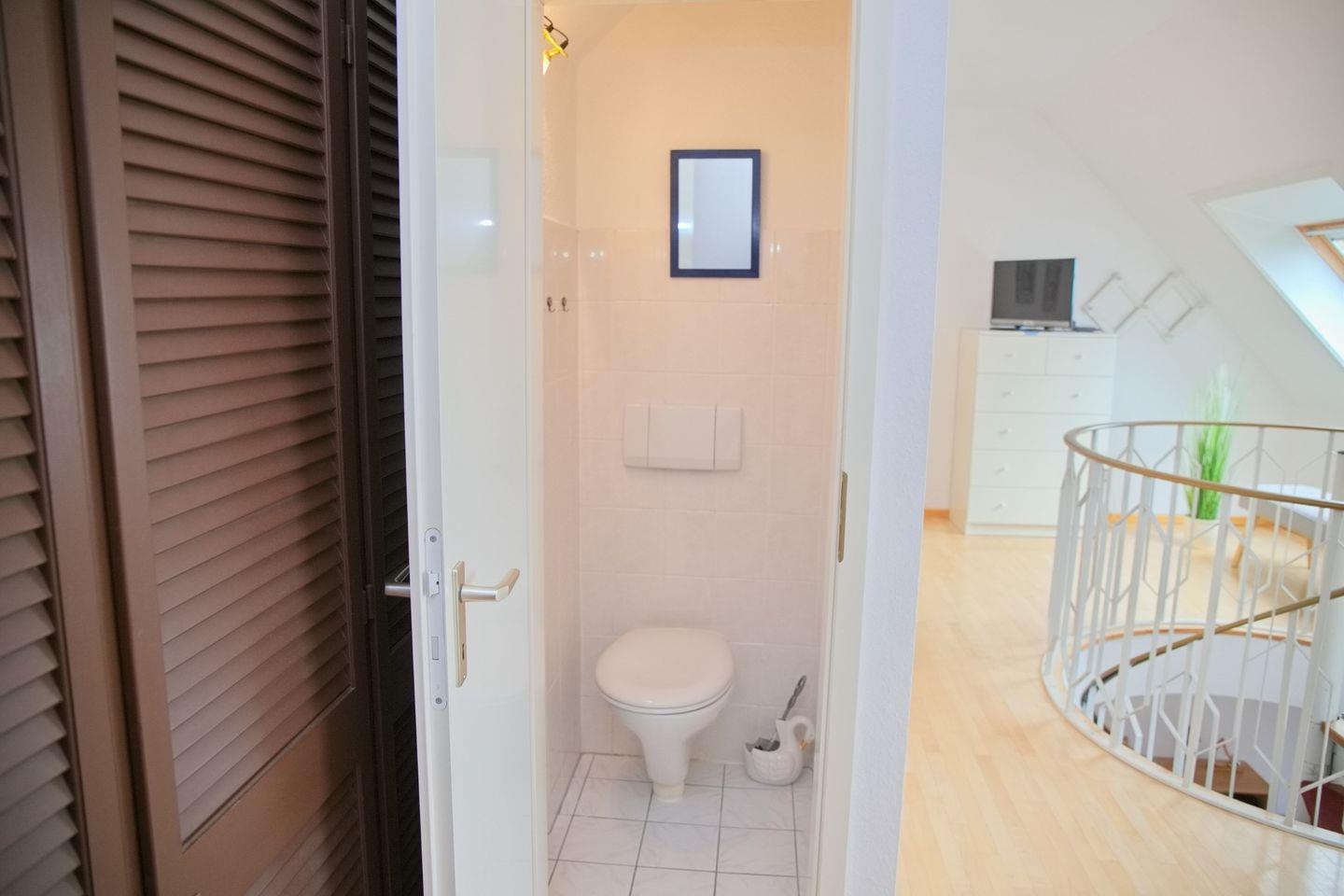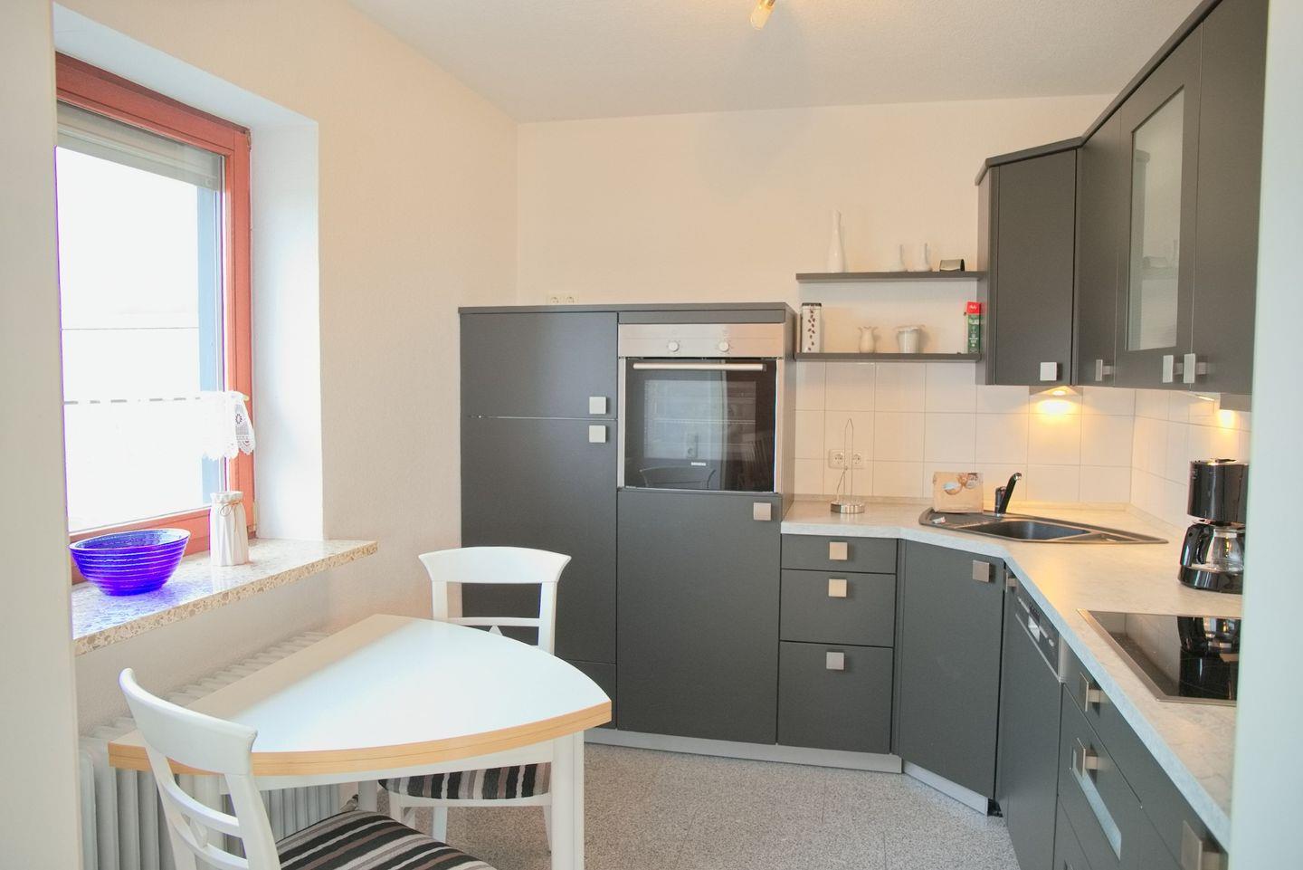 Die Wohnung verfügt auf der 1. Wohnebene über ein Kinderzimmer mit Einzelbetten, Flach TV, Babybett und Kinderhochstuhl. Ein modernisiertes Duschbad mit Waschtisch, WC und Föhn. Der Wohnbereich überzeugt mit der Couchgarnitur, Flach TV, Stereoanlage, DVD-Player, offenem Essbereich und dem offenen Zugang zur Küche, sowie zum Balkon. Die Küche ist ausgestattet mit einem Geschirrspüler, Kühlschrank mit 3* Gefrierfach, Backofen, Cerankochfeld, Mikrowelle, Kaffeemaschine, Toaster, Wasserkocher. Auf der 2. Wohnebene, die über eine Wendeltreppe zu erreichen ist, befindet sich das Schlafzimmer mit Doppelbett und Kleiderschrank. Die Fenster lassen sich durch Verdunklungsrollos abdunkeln. Auf dieser ebene finden Sie auch das Gäste- WC, sowie eine gemütliche Ecke mit Korbsesseln und Teilseeblick. Eine Münzwaschmaschine steht zur allgemeinen Nutzung zur Verfügung. In dieser Nichtraucherwohnung ist ein Hund erlaubt.