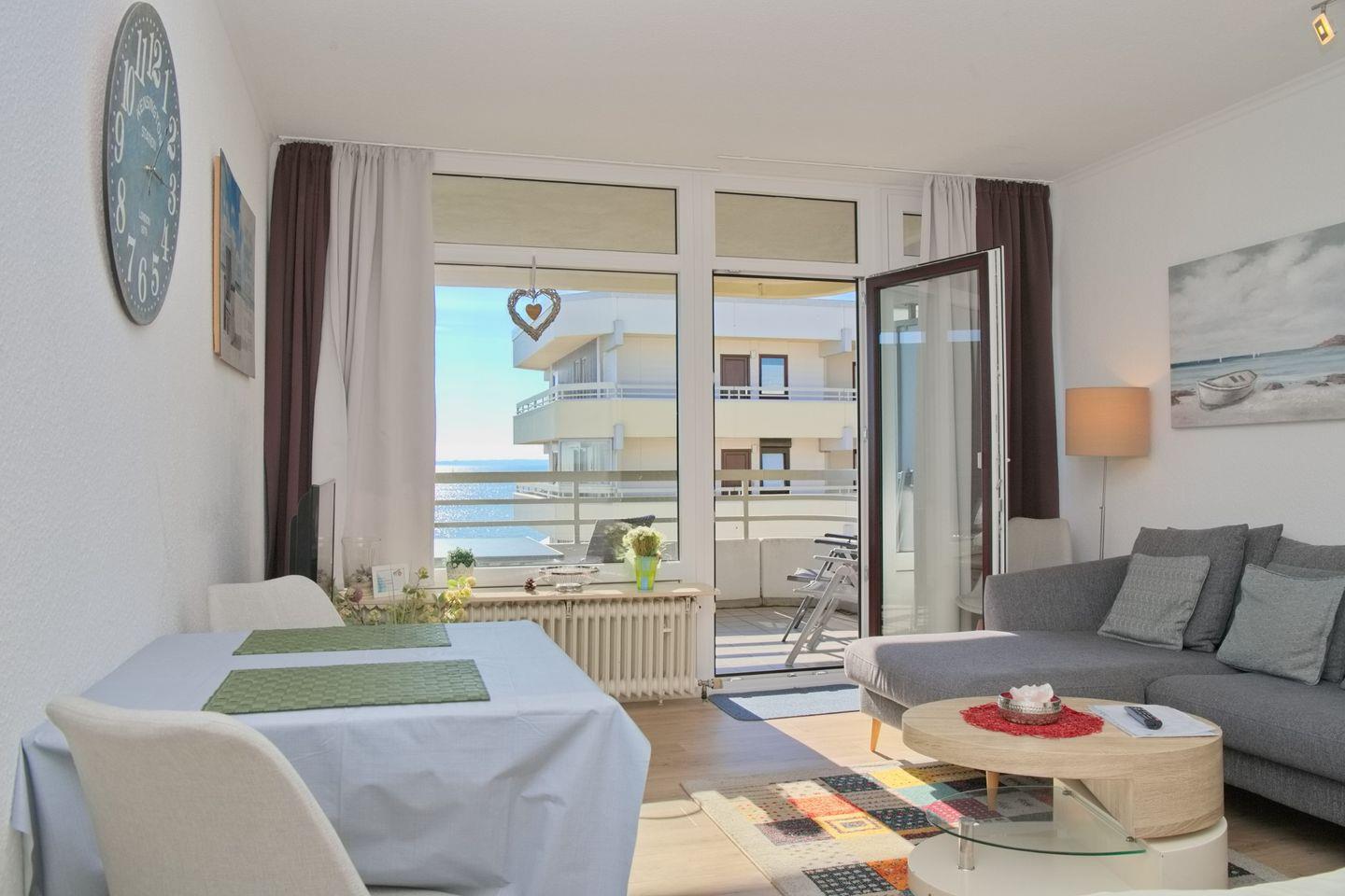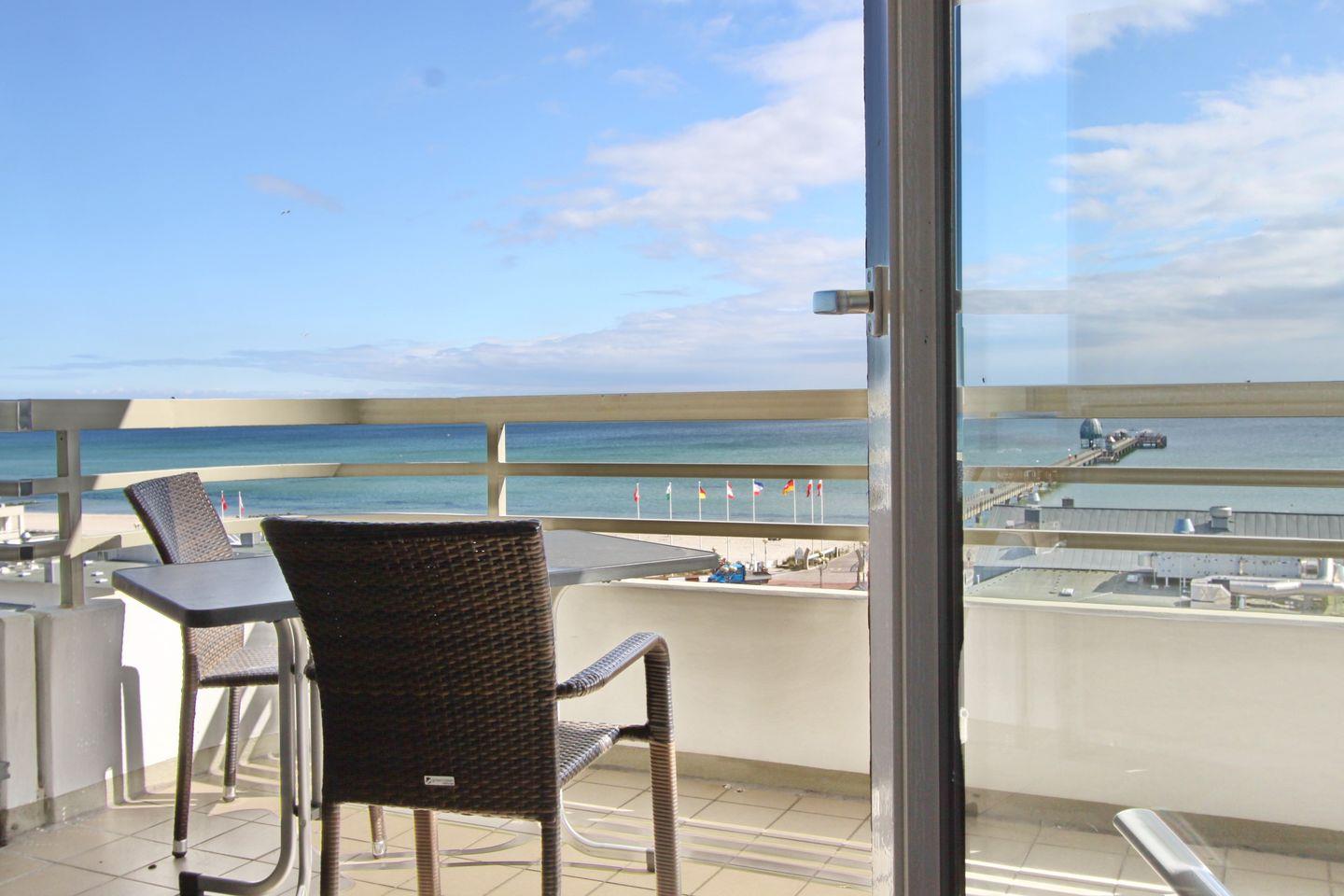 Die 45m² große Ferienwohnung befindet sich in der 7. Etage mit 100% Seeblick und großem Balkon.