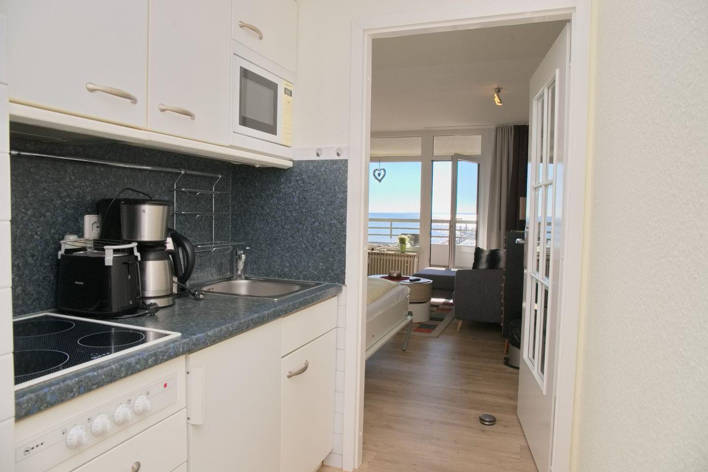 Das Schlafzimmer ist ausgestattet mit einem Etagenbett. Das großzügige Duschbad mit WC ist innen liegend. Die Küche befindet sich im Flur und verfügt über ein Cerankochfeld, einen Kühlschrank mit Gefrierfach, einer Mikrowelle, einem Toaster, einer Kaffeemaschine und einem Wasserkocher. Geschirr und Besteck ist ausreichend vorhanden. Genießen schon beim zubereiten kulinarischer Köstlichkeiten den Blick auf die See.