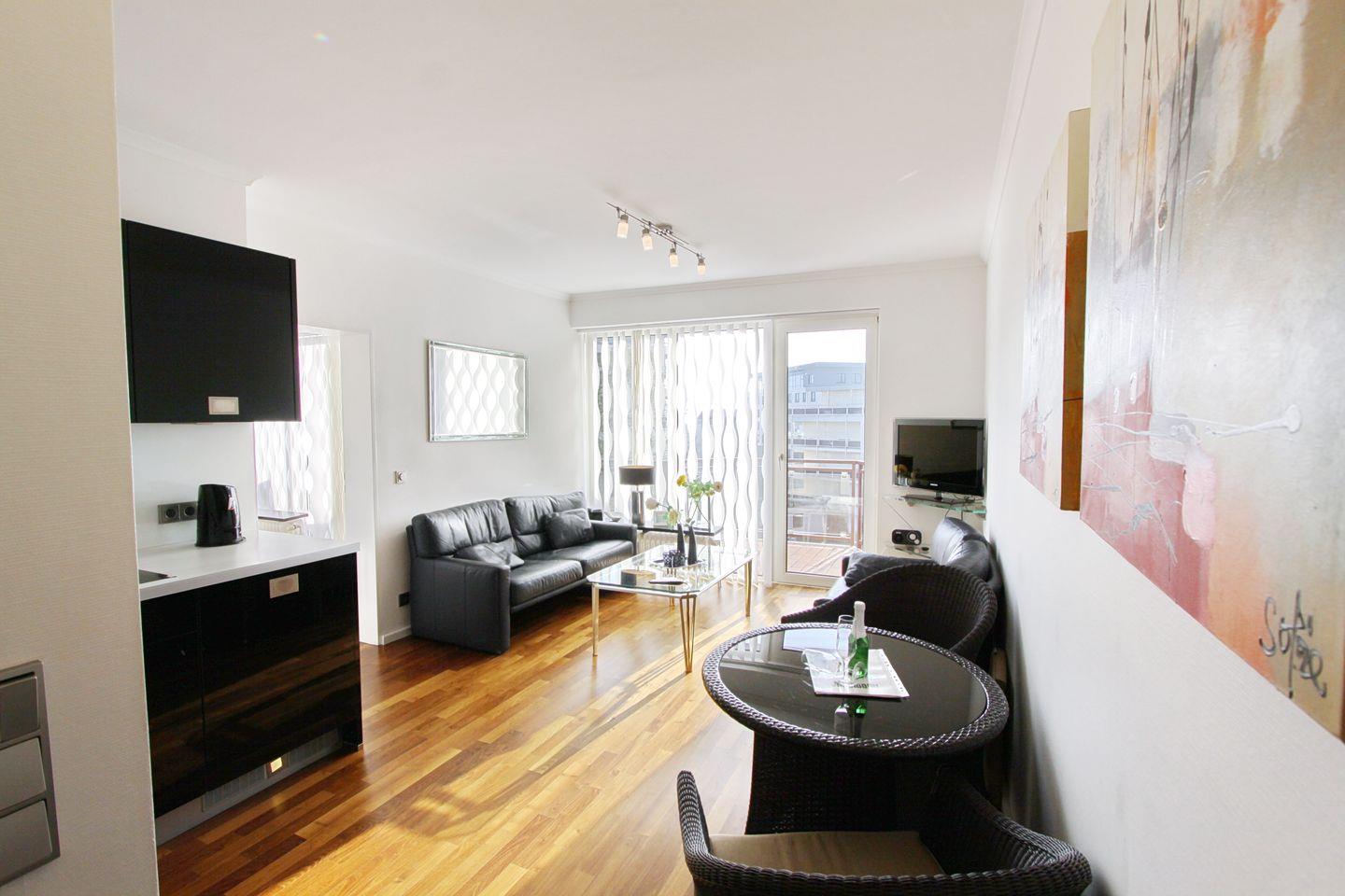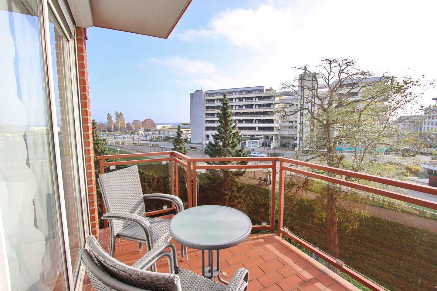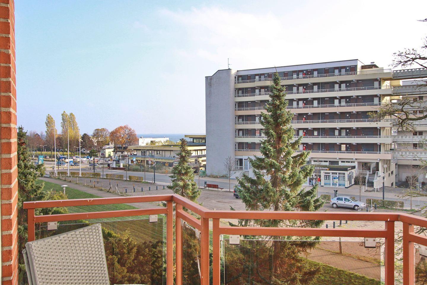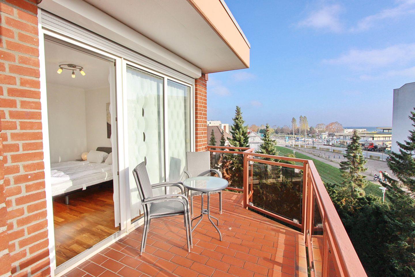 Moderne Ferienwohnung Deichkrone App. 28 in Grömitz mit Balkon und eingeschränktem Meerblick, nahe Strand und Promenade.