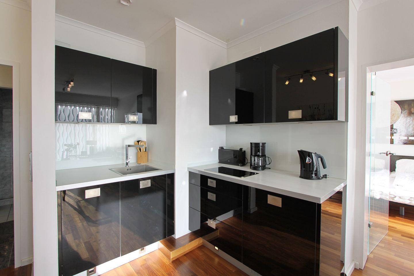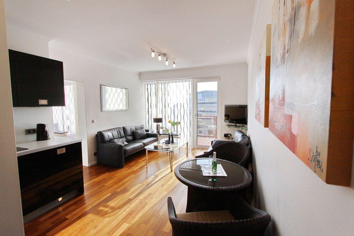 Mit einer großzügigen Fläche von 45 m² befindet sich die Wohnung im 3. Stock eines gepflegten Mehrfamilienhauses, das bequem mit einem Aufzug erreichbar ist. Der lichtdurchflutete Wohnbereich ist der ideale Ort, um nach einem langen Tag am Strand zu entspannen. Hier finden Sie eine komfortable Sofaecke sowie einen Essbereich, an dem Sie gemütliche Abende verbringen können. Die offene Küche ist mit allem ausgestattet, was das Herz begehrt: Spülmaschine, Induktionsherd, Kühlschrank und Kaffeemaschine stehen Ihnen zur Verfügung, damit Sie sich wie zu Hause fühlen.