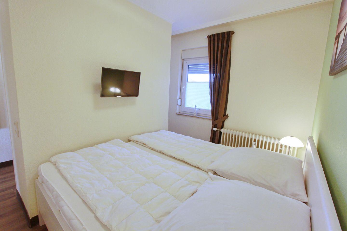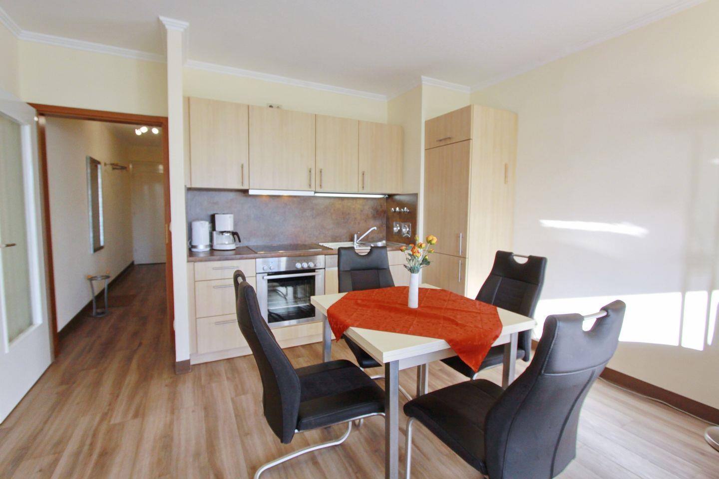 Im Wohnzimmer gibt es eine praktische Schlafcouch, einen Flach-TV, eine Stereoanlage zum einstimmen und eine Essecke mit 4 Stühlen zum geselligen miteinander sein.