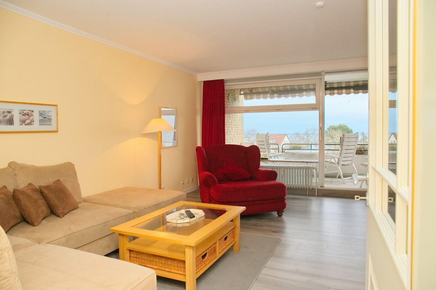 Das große, helle Wohnzimmer mit Blick über die Ostsee heißt Sie in warmen Farben willkommen. An den komfortablen Wohnbereich schließt sich die Essgruppe an. In der Küche können Sie Ihren Kochkünsten freien Lauf lassen.