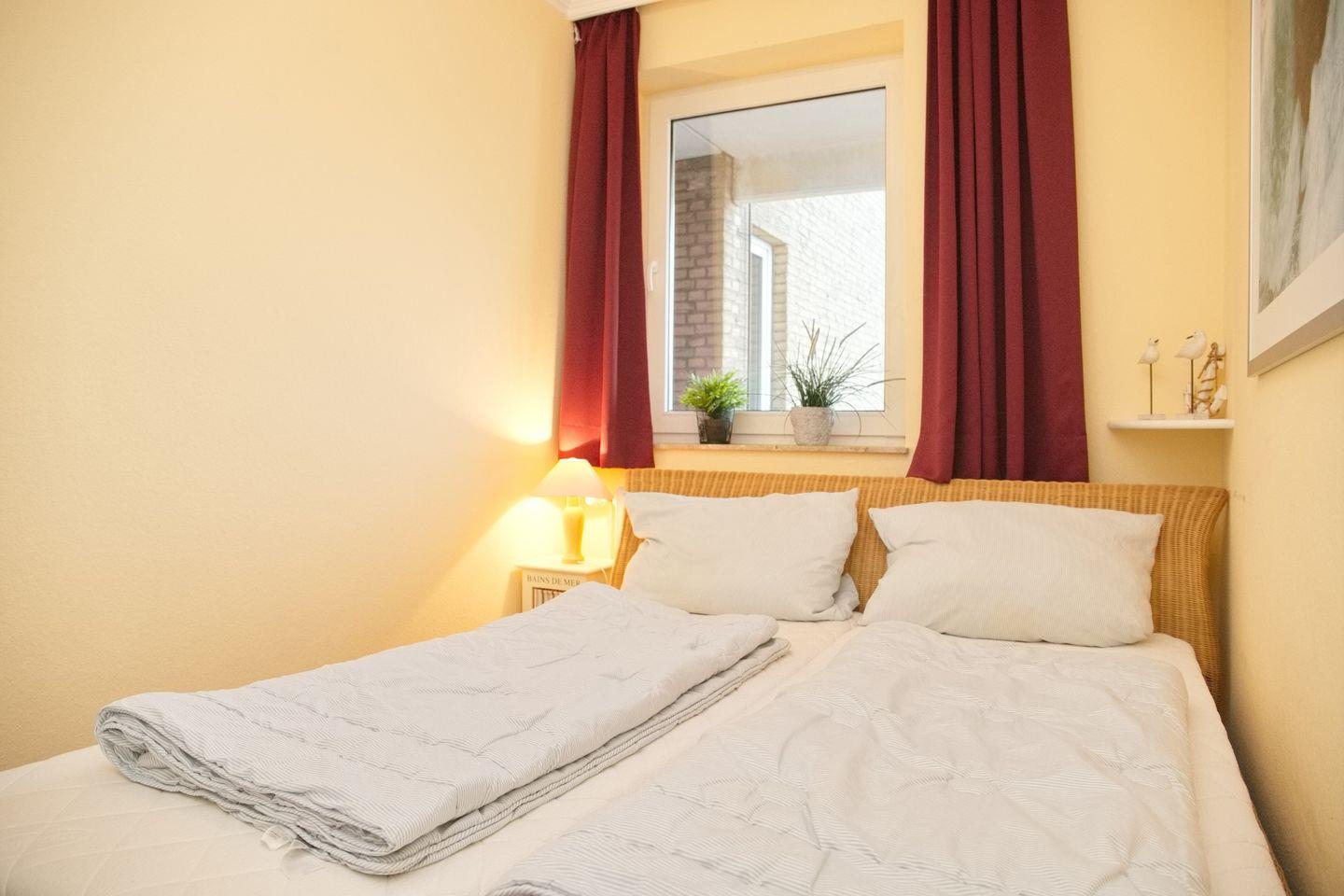 In dem Schlafzimmer sorgt ein Doppelbett (1,60 x 2 m) für entspannten Schlaf.