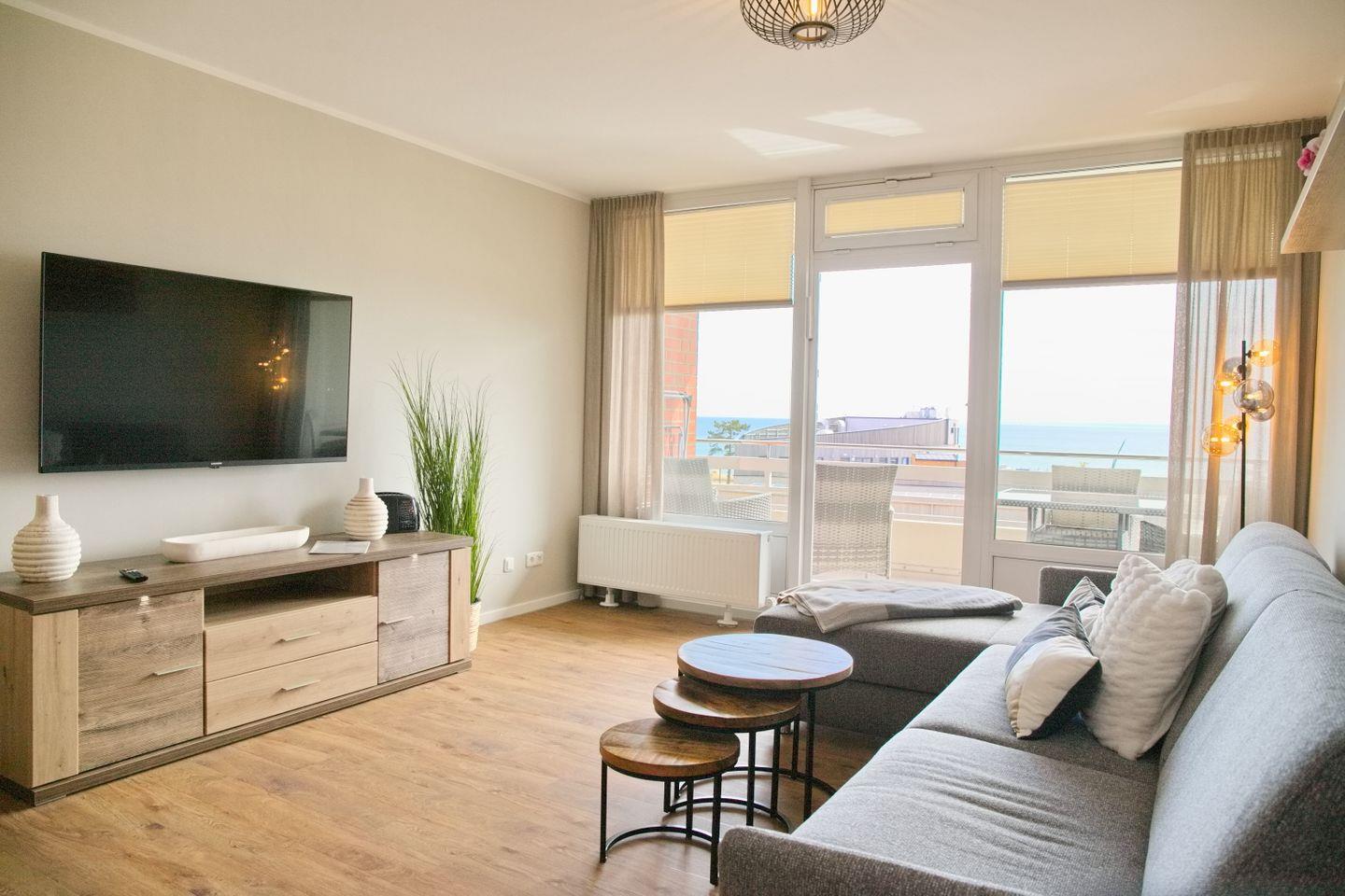 Moderne und freundliche Ferienwohnung mit möbliertem Süd-Balkon und traumhaftem Meerblick. Eine Garage und W-LAN inklusive.