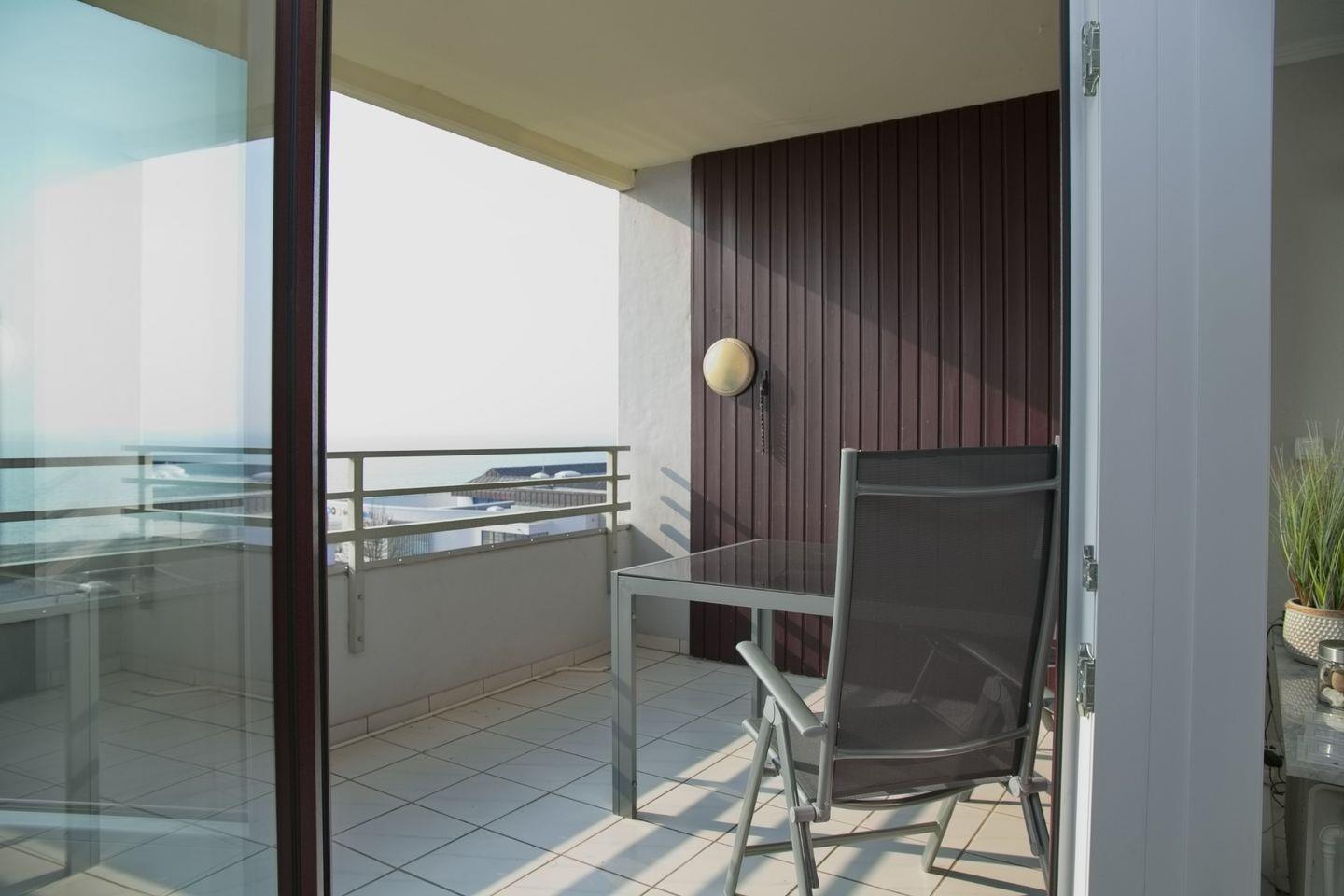 Modern eingerichtete Ferienwohnung mit direktem Meerblick und Balkon im Herzen von Grömitz, nur wenige Schritte von der Seebrücke entfernt.