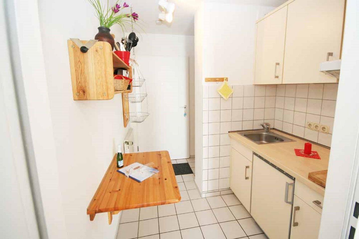 Die Küche ist mit einem 2-Plattenherd, Kühlschrank mit Gefrierfach, Mikrowelle, Wasserkocher, Kaffeemaschine und Toaster ausgestattet.