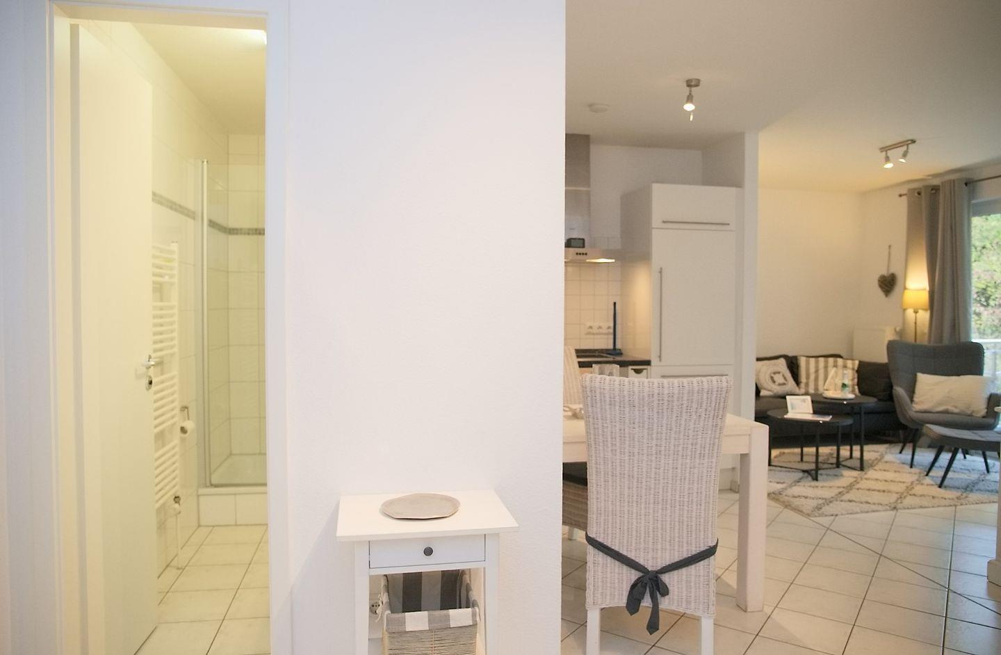 Sehr schöne und moderne 2-Zimmer-Wohnung mit möblierten Balkon und herrlichem Blick in den Kurpark. Genießen Sie schon in der Wohnung den maritimen Flair.