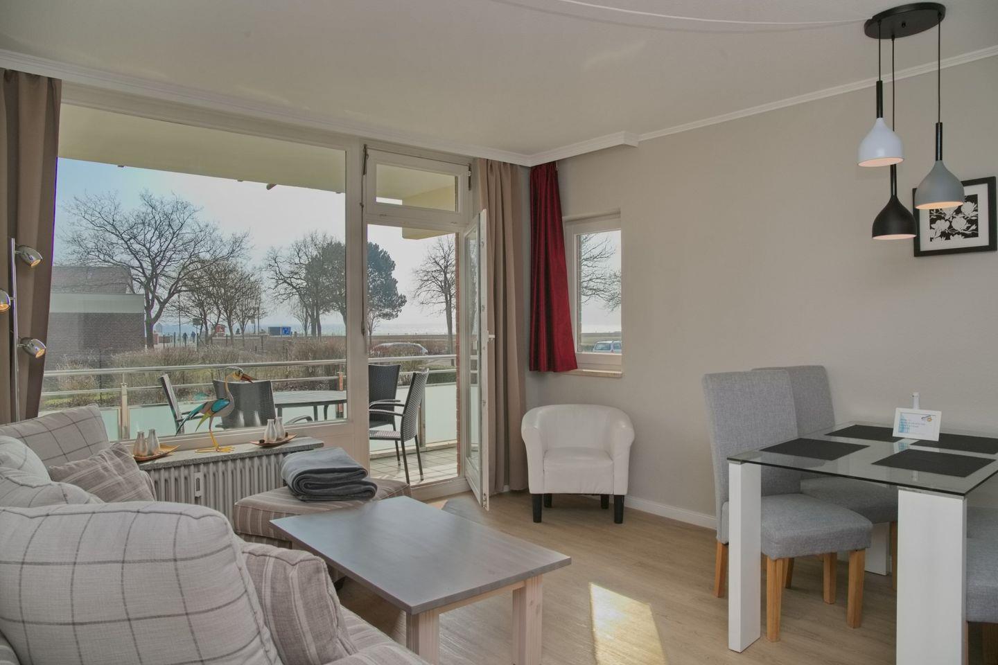 Sehr schöne Ferienwohnung mit möbliertem Süd-Balkon und Seeblick. Wohnen im Herzen von Grömitz in unmittelbarer Nähe von der endlosen Promenade.