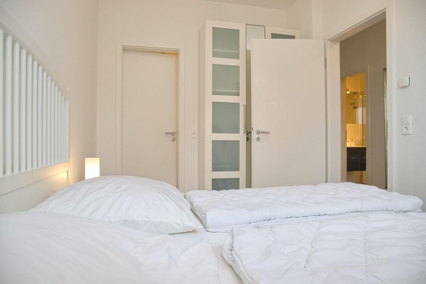 Zweites Schlafzimmer: Hier erwartet Sie ein weiteres gemütliches Doppelbett (2x80x200 cm), ein Nachtschrank, ein Kleiderschrank und ein Flachbild-TV für entspannte Abende.