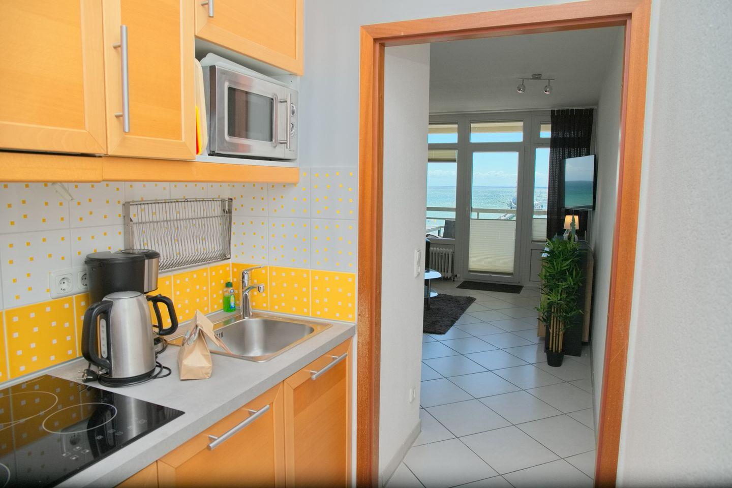 Willkommen in der stilvoll eingerichteten 2-Zimmer-Wohnung im 7. Stock des Grömitz-Centers II, die mit einem traumhaften Balkon in Südlage und einem 100% direkten Blick auf die Ostsee begeistert. Genießen Sie hier sonnige Stunden, entspannte Abende mit Meeresrauschen und einen unvergesslichen Ausblick – ideal für Paare, kleine Familien oder Alleinreisende.