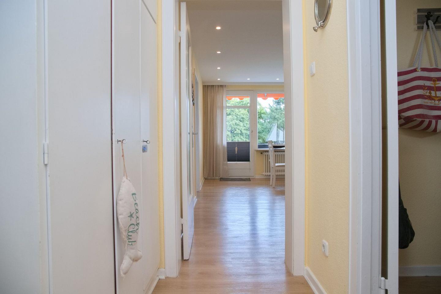 Beim Betreten der Wohnung gelangen Sie in einen einladenden Flur, ausgestattet mit einem praktischen Ganzkörperspiegel, einer Garderobe und einem großzügigen Einbauschrank, der ausreichend Stauraum für Ihre Garderobe bietet.
