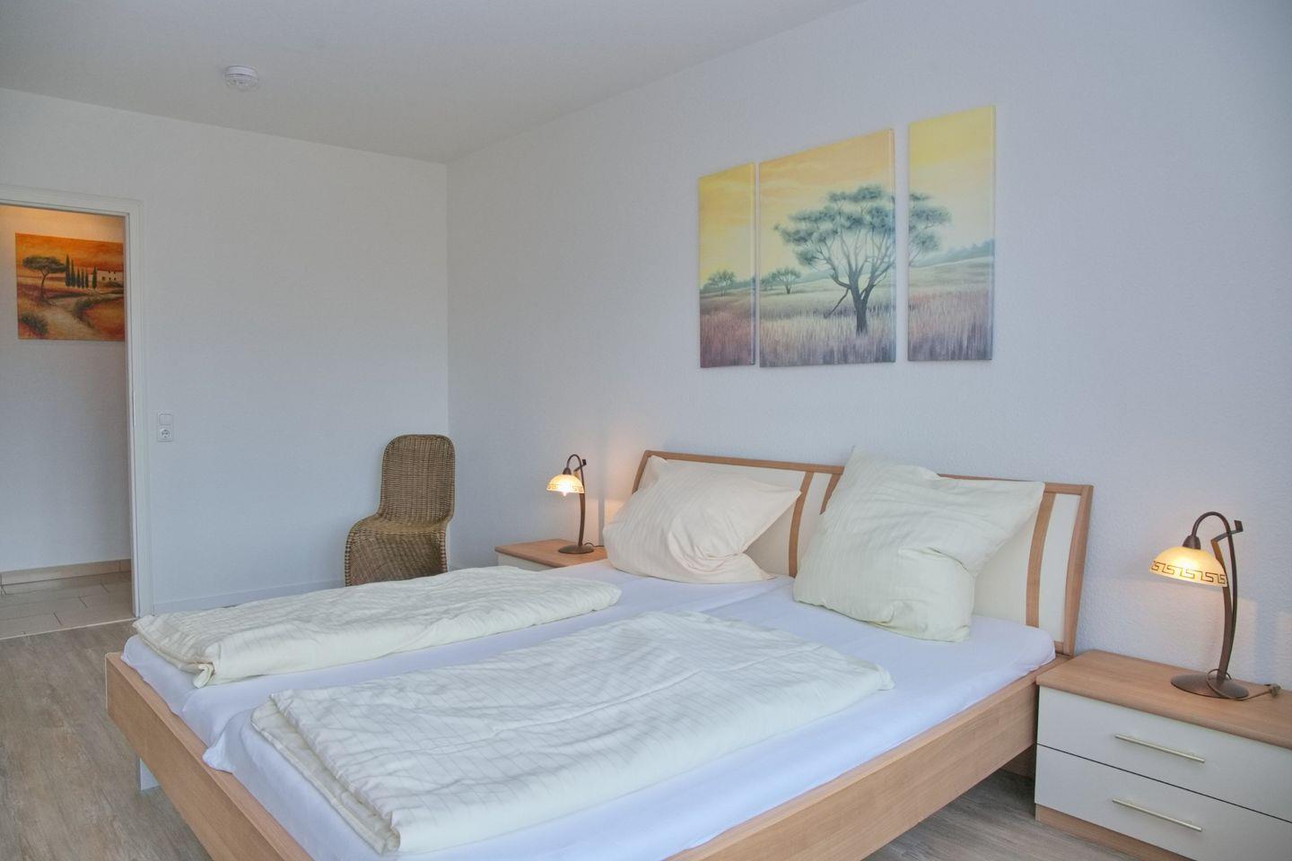 Die Ferienwohnung verfügt über zwei komfortable Schlafzimmer, die Ruhe und Erholung bieten. Beide Zimmer sind geschmackvoll eingerichtet und mit bequemen Betten ausgestattet.
