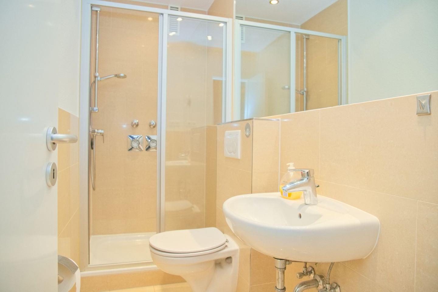 Beide Bäder sind modern und bieten Ihnen alles, was Sie für Ihre tägliche Körperpflege benötigen. Das erste Duschbad erreichen Sie von dem Schlafbereich aus und das zweite Duschbad von dem offenen Wohnbereich.