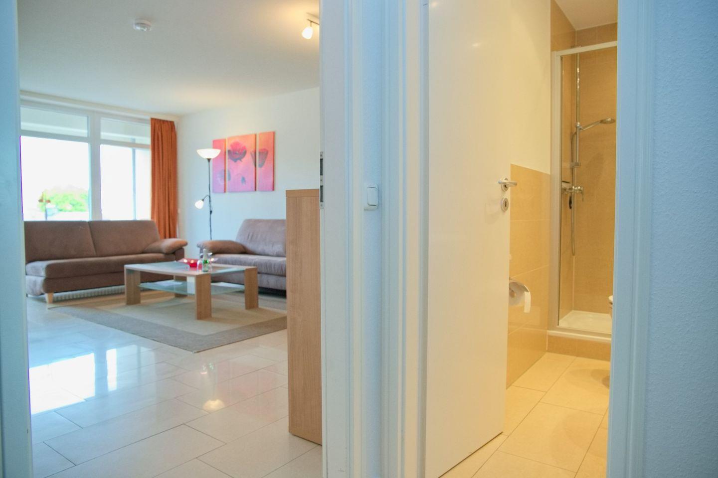 Ein besonderes Highlight dieser Ferienwohnung sind die beiden Balkone. Hier können Sie die frische Meeresluft genießen, die Aussicht auf die gepflegte Anlage. Die Balkone sind mit Sitzgelegenheiten ausgestattet, sodass Sie hier einige Stunden im Freien verbringen können.