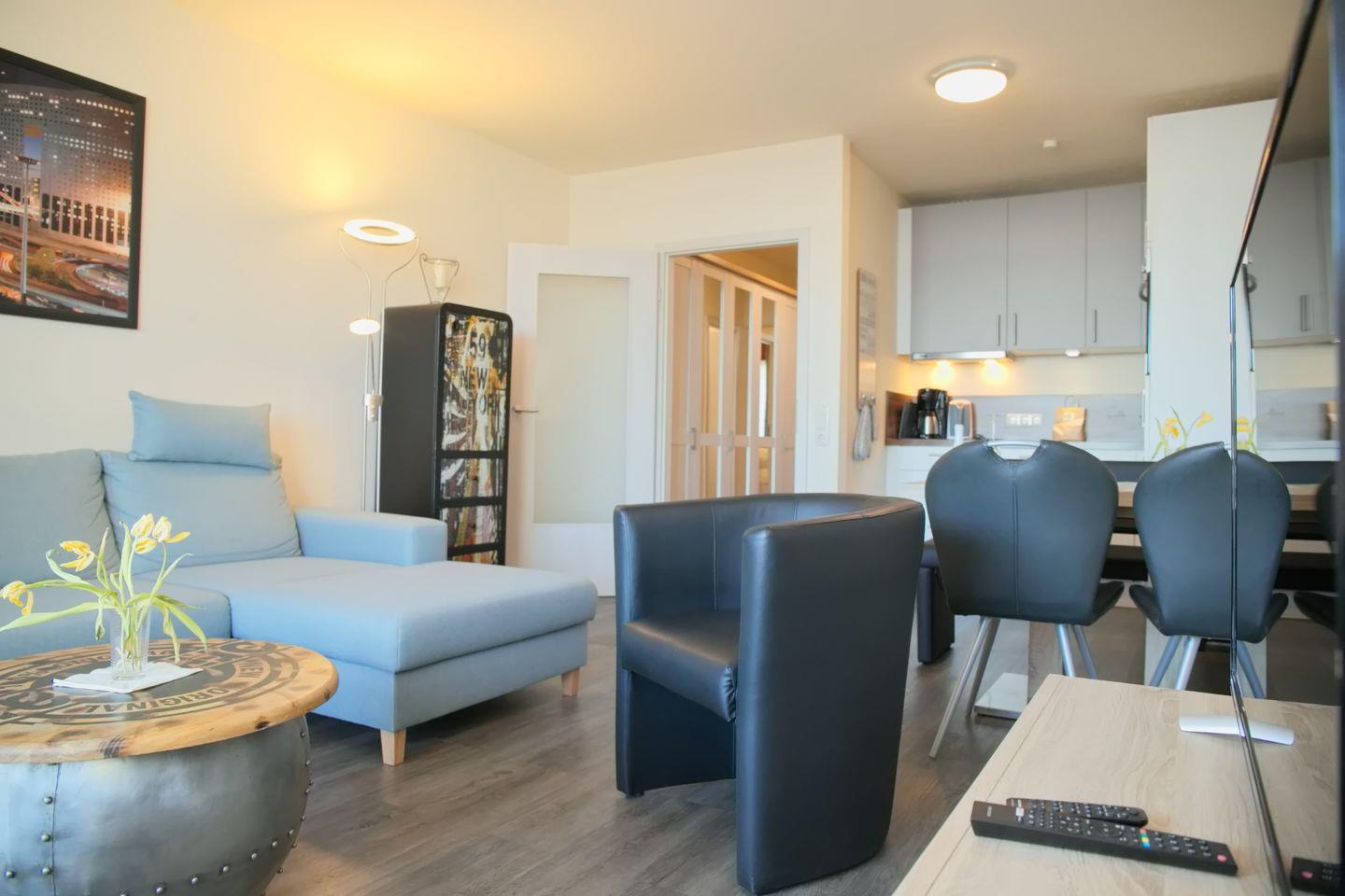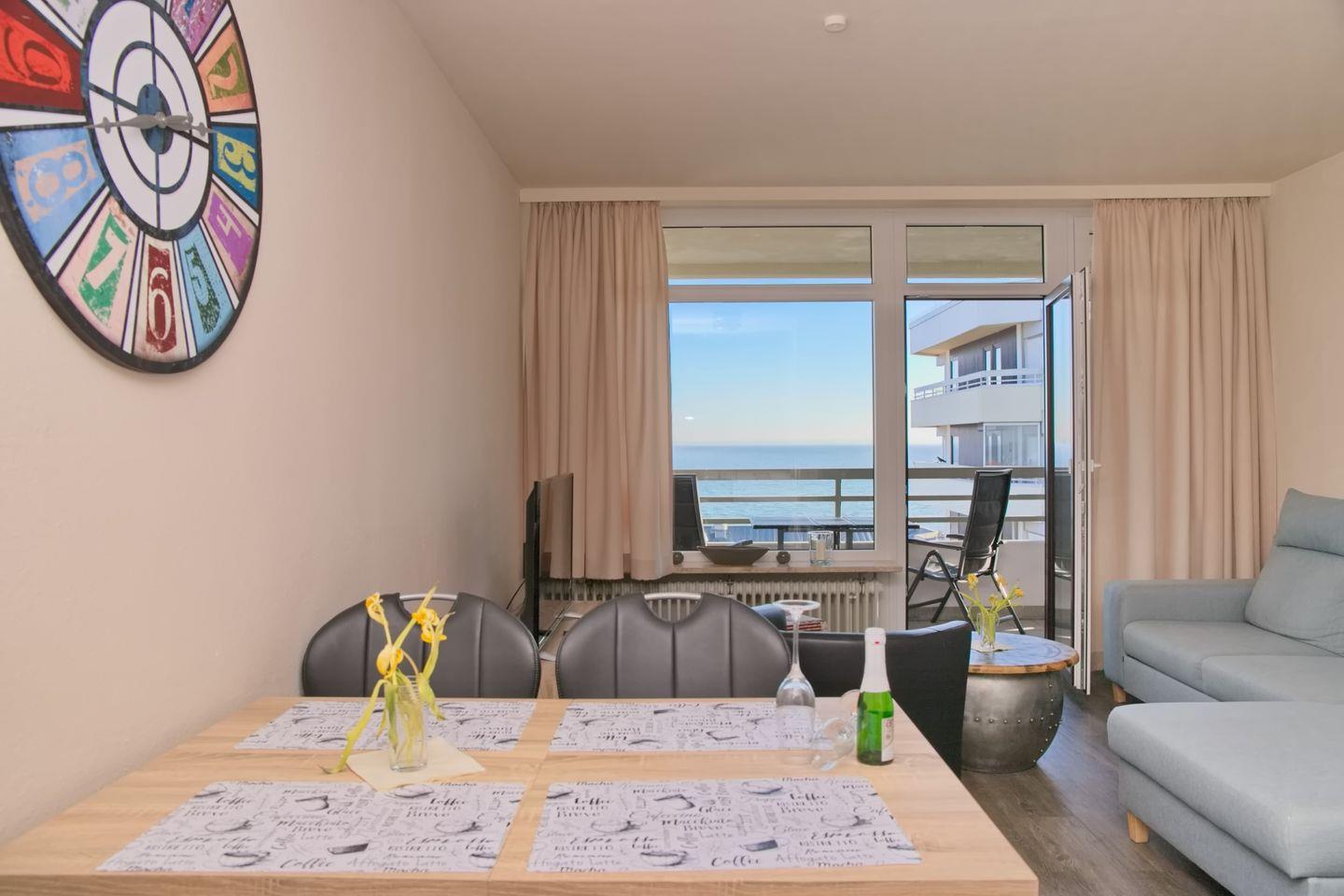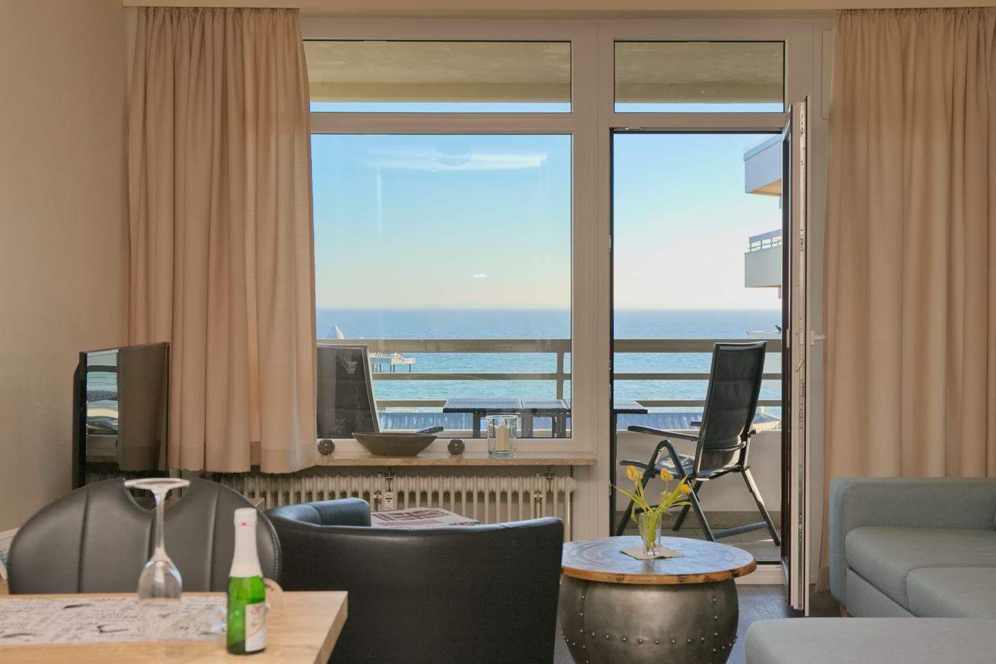 Stylisch eingerichtete 3 Zimmer Ferienwohnung mit möbliertem Südbalkon und 100 % Seeblick in Zentraler Lage.Im Herzen von Grömitz wohnen Sie hier.