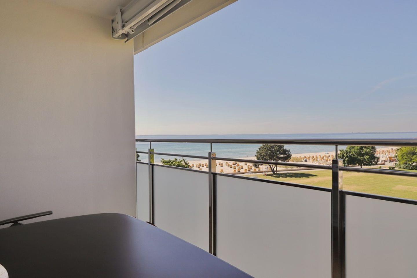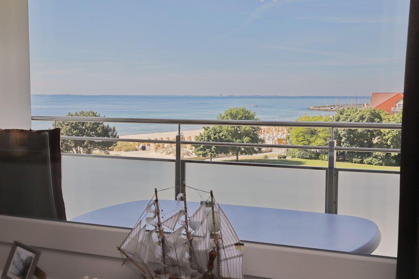 Moderne Ferienwohnung mit Balkon und direktem Meerblick in Grömitz, nur wenige Schritte von Strand und Promenade entfernt.