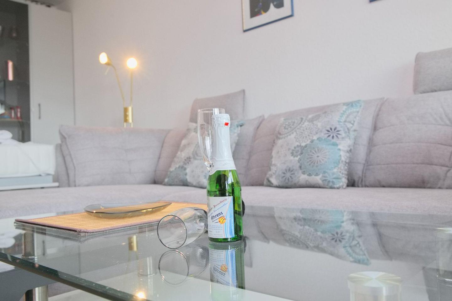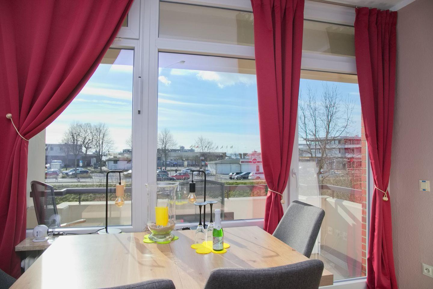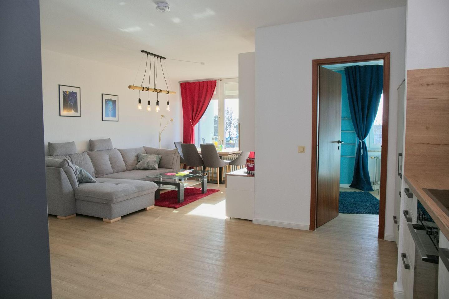 Moderne 2-Zimmer Ferienwohnung mit Südbalkon nahe der Seebrücke in Grömitz, ideal für Paare und kleine Familien.