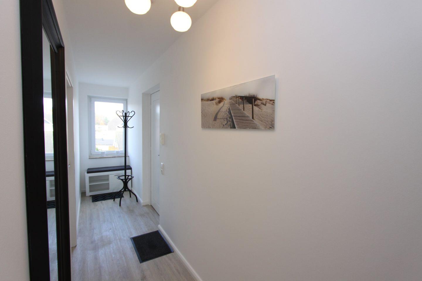 In der Wohnung angekommen befinden Sie sich im schmalen Flur, von dem Sie alle Räume bequem erreichen.