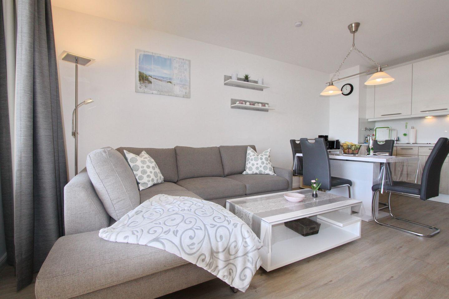 Diese Moderne ca. 52m² große 2 Zimmer Ferienwohnung befindet sich in der 3. Etage einer gepflegten Appartementanlage, unweit vom Zentrum und der Seebrücke.