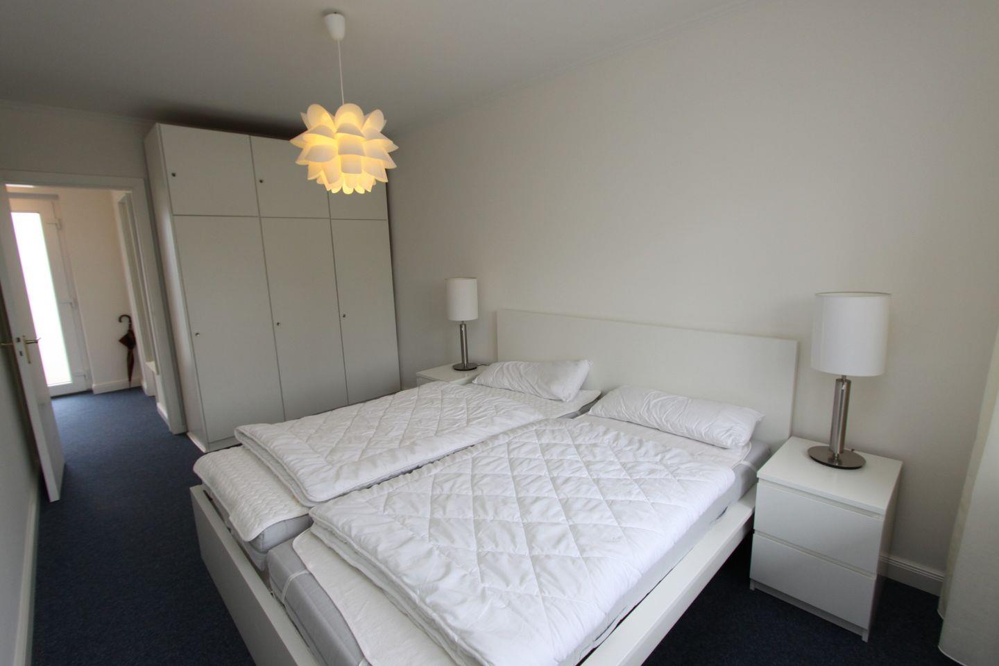 Das Schlafzimmer bietet Ihnen ein Doppelbett 2x90x200 cm, 2 Nachtschränke und ein großer Kleiderschrank. Ein Kinderbett passt mit rein.