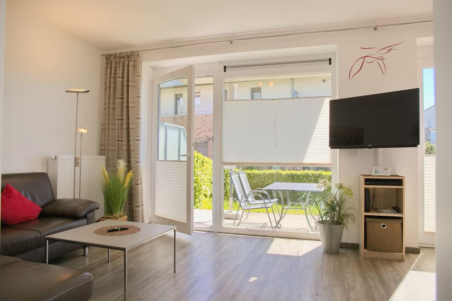 Sehr moderne und hochwertige Ferienwohnung mit möblierter Terrasse und kleinen Garten in einer stilvoll angelegten Wohnanlage.