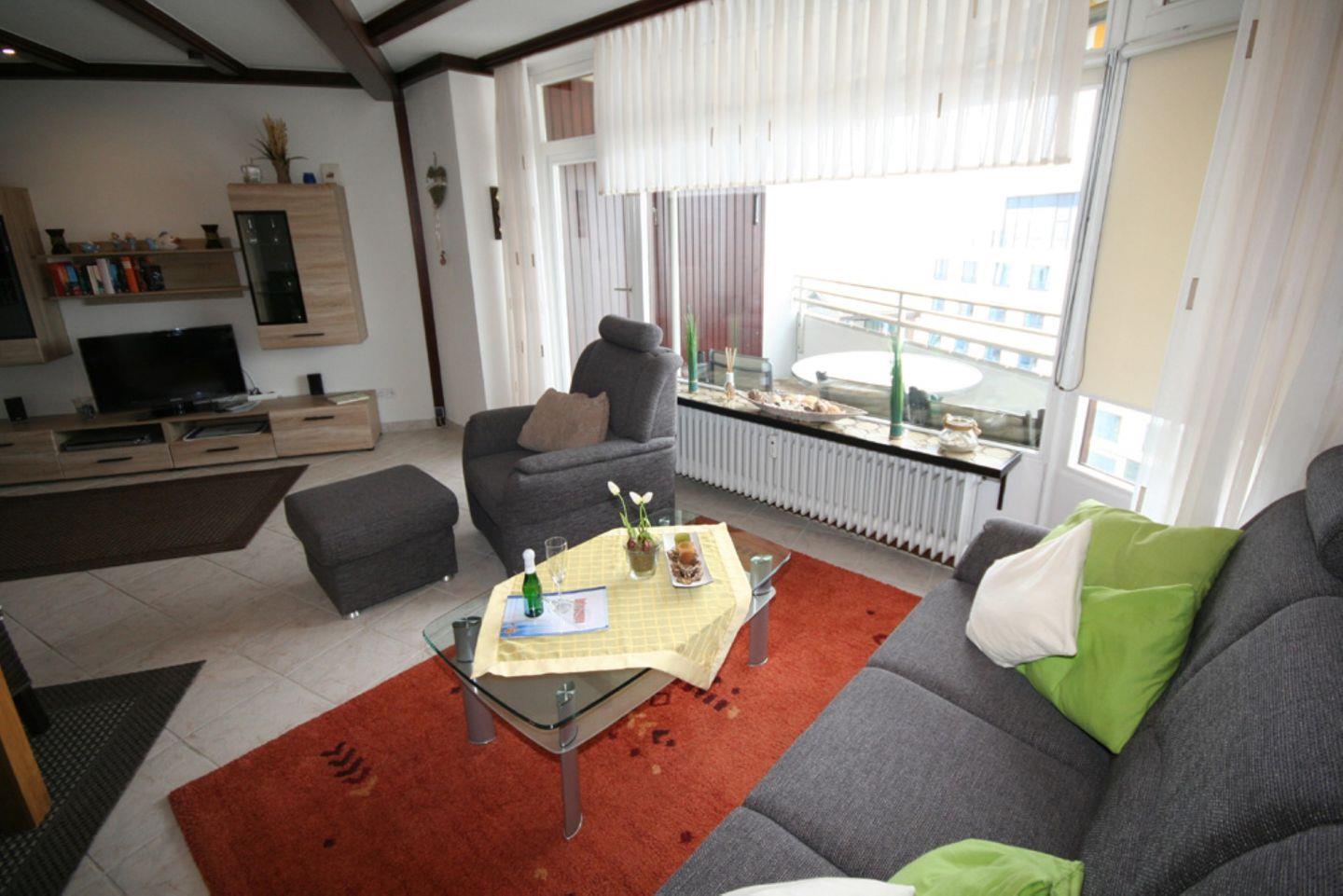 Vom Wohnzimmer aus haben Sie Zugang zum möblierten Balkon. Genießen Sie von hier den Blick auf die Ostsee.