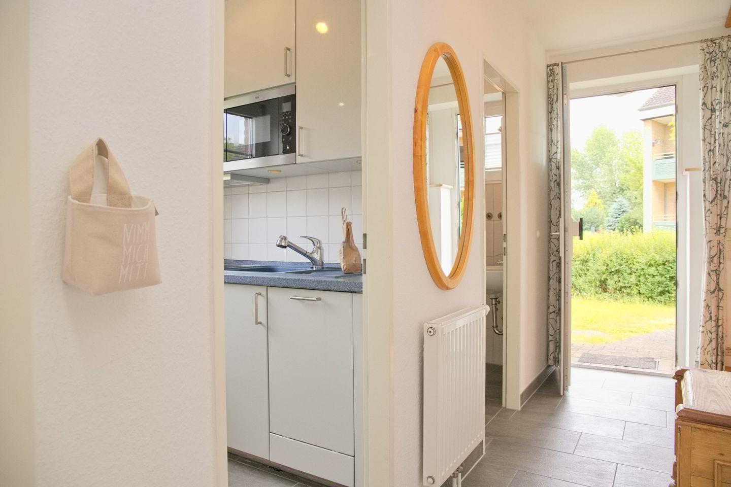 Platz. Die Einbauküche ist voll ausgestattet mit einem Cerankochfeld, einem