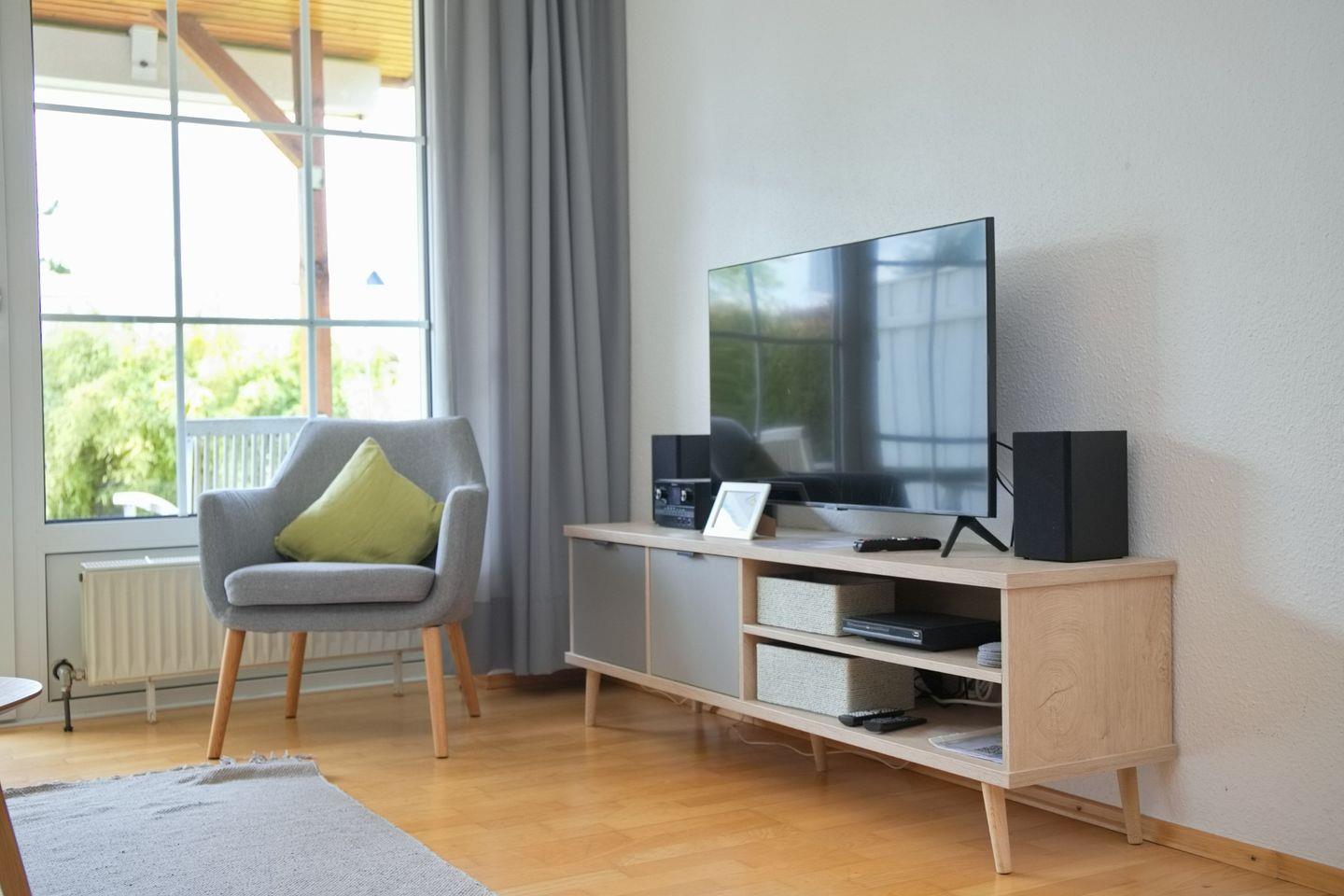 der Schlafräume steht zusätzlich ein Schlafsessel und ein weiterer Flach TV.