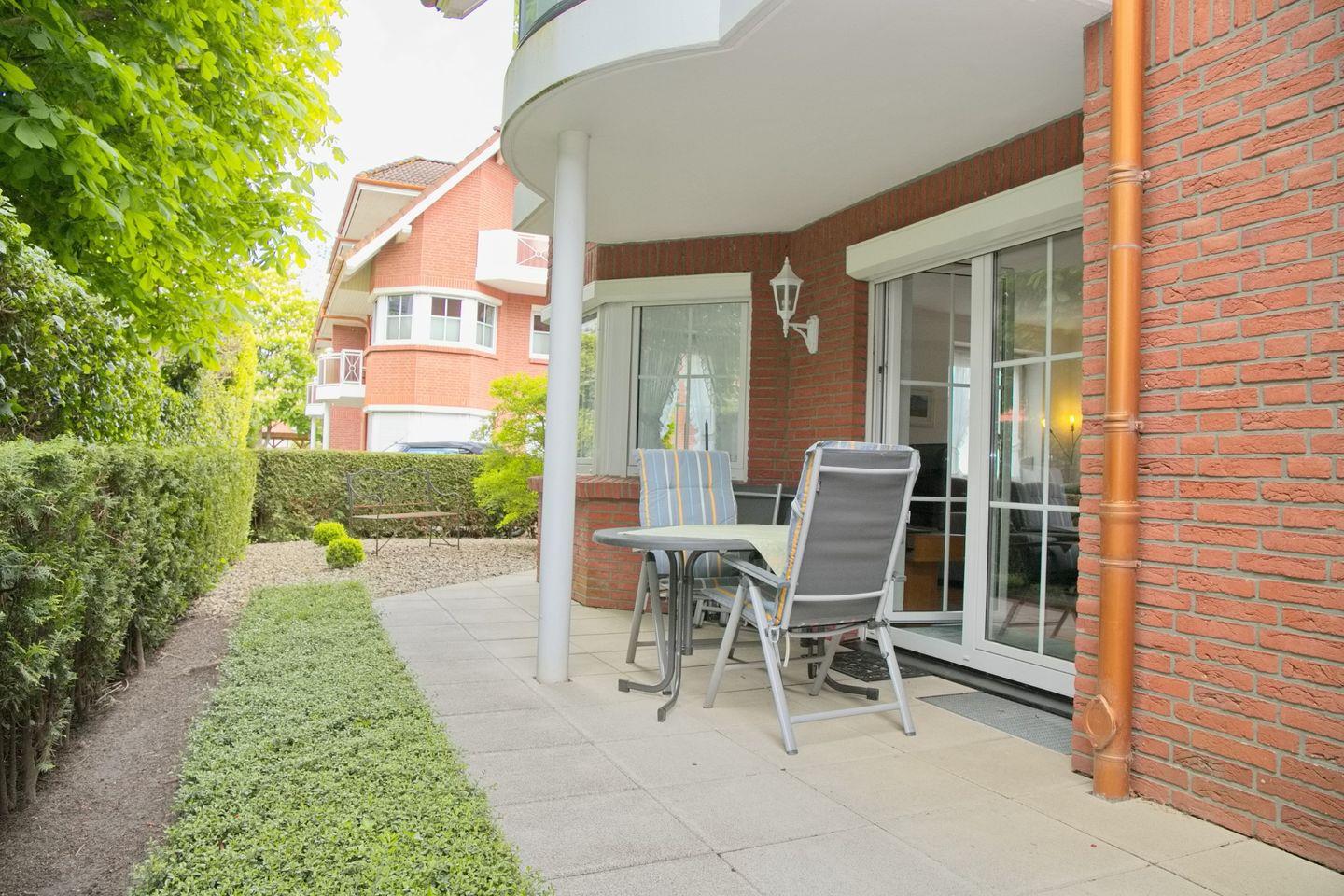 Schöne geschmackvolle Ferienwohnung mit möblierter Terrasse, direkt hinter dem Deich, nur wenige Meter vom Strand und Zentrum entfernt.