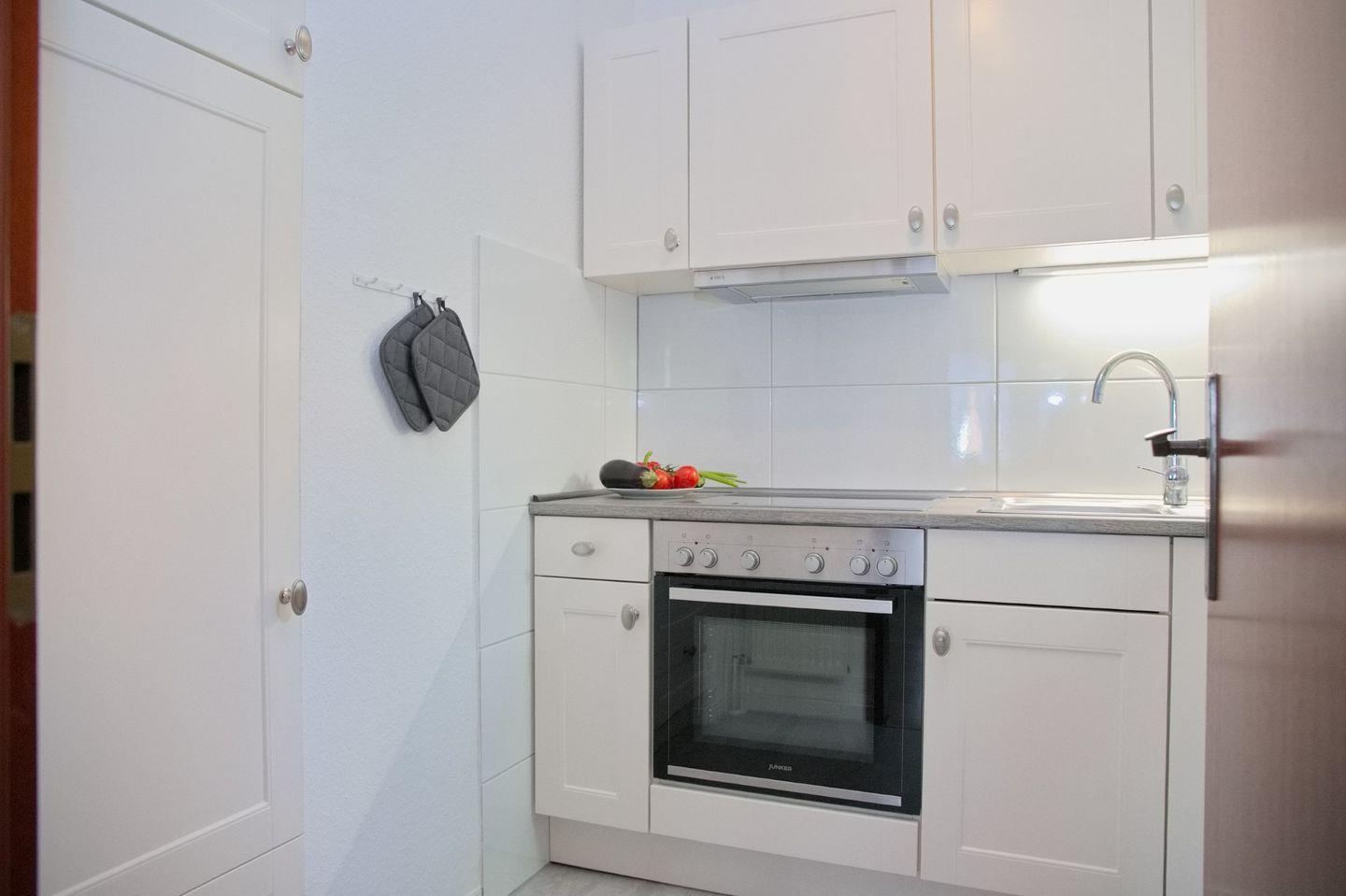 Die separate Küche mit Fenster lässt keine Wünsche offen und ist vollständig ausgestattet mit einem Herd inklusive Cerankochfeld und Backofen, einer Dunstabzugshaube, einem großen Kühlschrank mit Gefrierfach, sowie einer Mikrowelle, einem Geschirrspüler und verschiedenen kleinen Elektrogeräten wie Wasserkocher, Kaffeemaschine, Mixer und Toaster. Hier können Sie Ihrer Kochkunst freien Lauf lassen und sich kulinarisch verwöhnen.