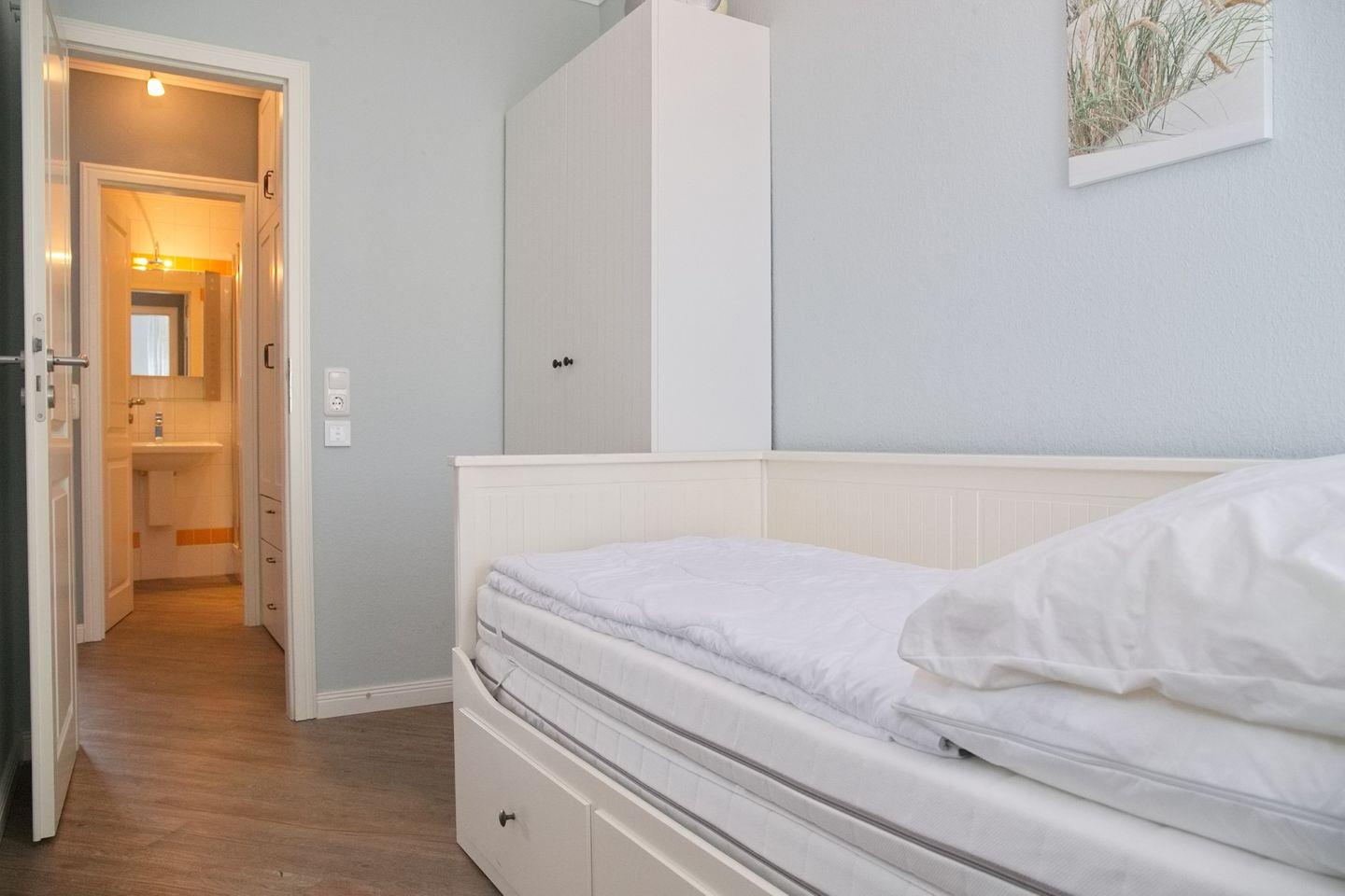 Bitte beachten Sie, dass kein Strandkorb zur Verfügung steht, aber Sie können den Strand und das Meer direkt vor Ihrer Haustür genießen. Ein Fahrstuhl im Haus erleichtert Ihnen zudem den Zugang zu Ihrer Ferienwohnung.