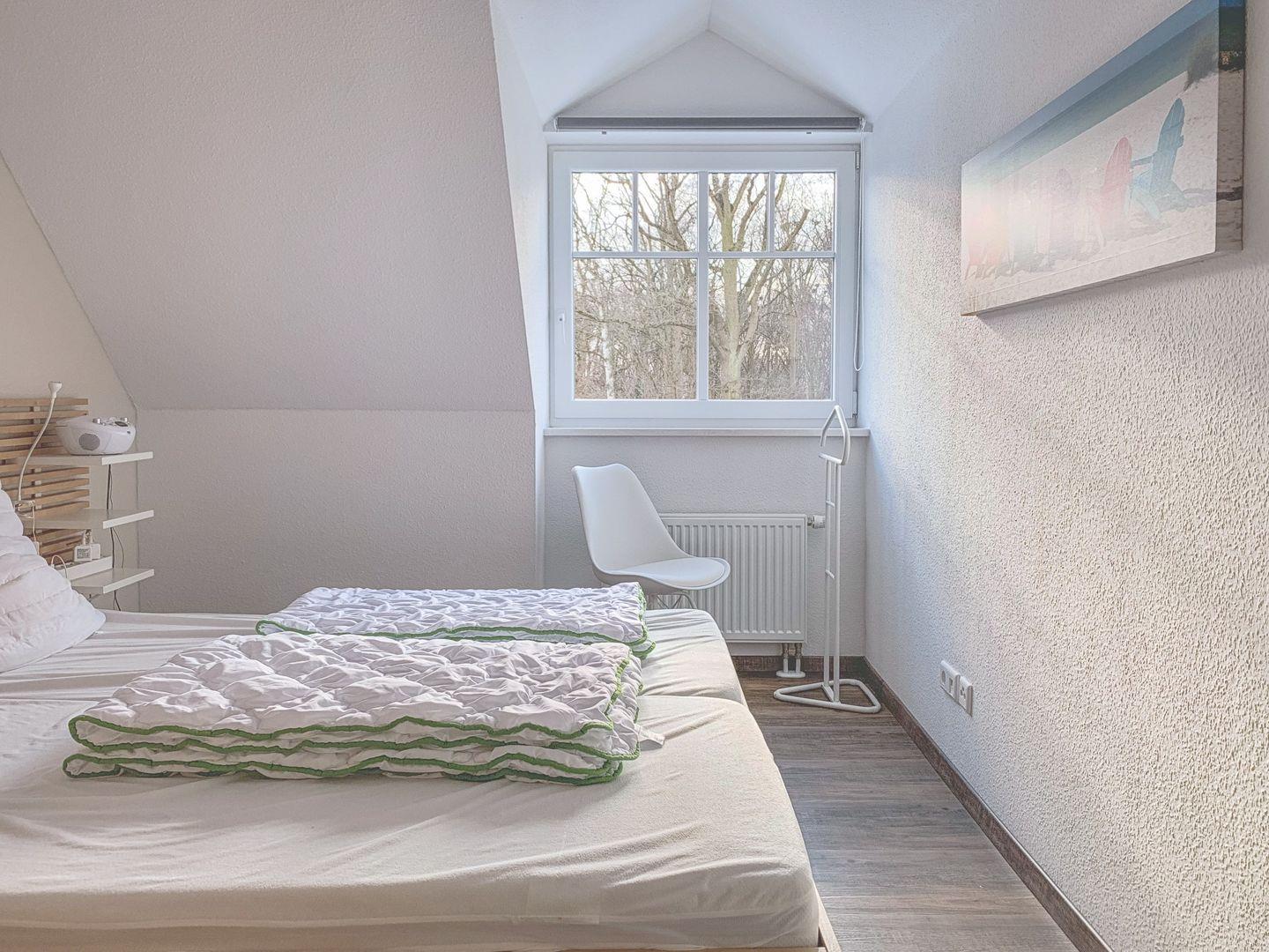 Die voll ausgestattete, offene Einbauküche verfügt über ein Cerankochfeld, Backofen, Geschirrspüler, Mikrowelle, Kühlschrank mit Gefrierfach, Wasserkocher, Toaster und Kaffeemaschine. Der Essbereich findet unter den Dachflächenfenstern seinen Platz und ist dadurch hell und freundlich. Das erste Schlafzimmer bietet Ihnen ein Doppelbett mit Kleiderschrank und Stummendiener, das zweite Schlafzimmer ein Einzelbett und ein Schrankklappbett. Im zweiten Schlafzimmer stehen Ihnen außerdem ein weiterer Flachbild TV und ein DVD- Player zur Unterhaltung bereit.