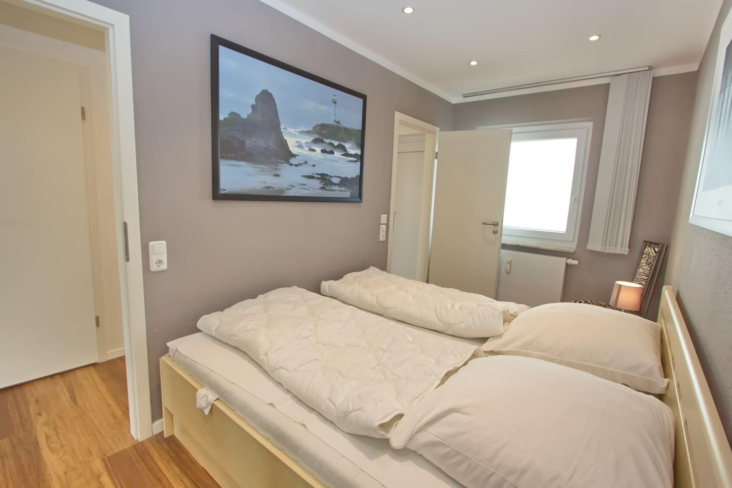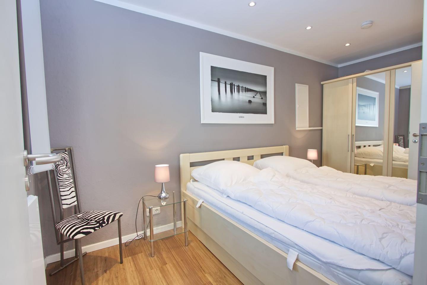 Das Schlafzimmer verfügt über ein Doppelbett und Kleiderschrank.