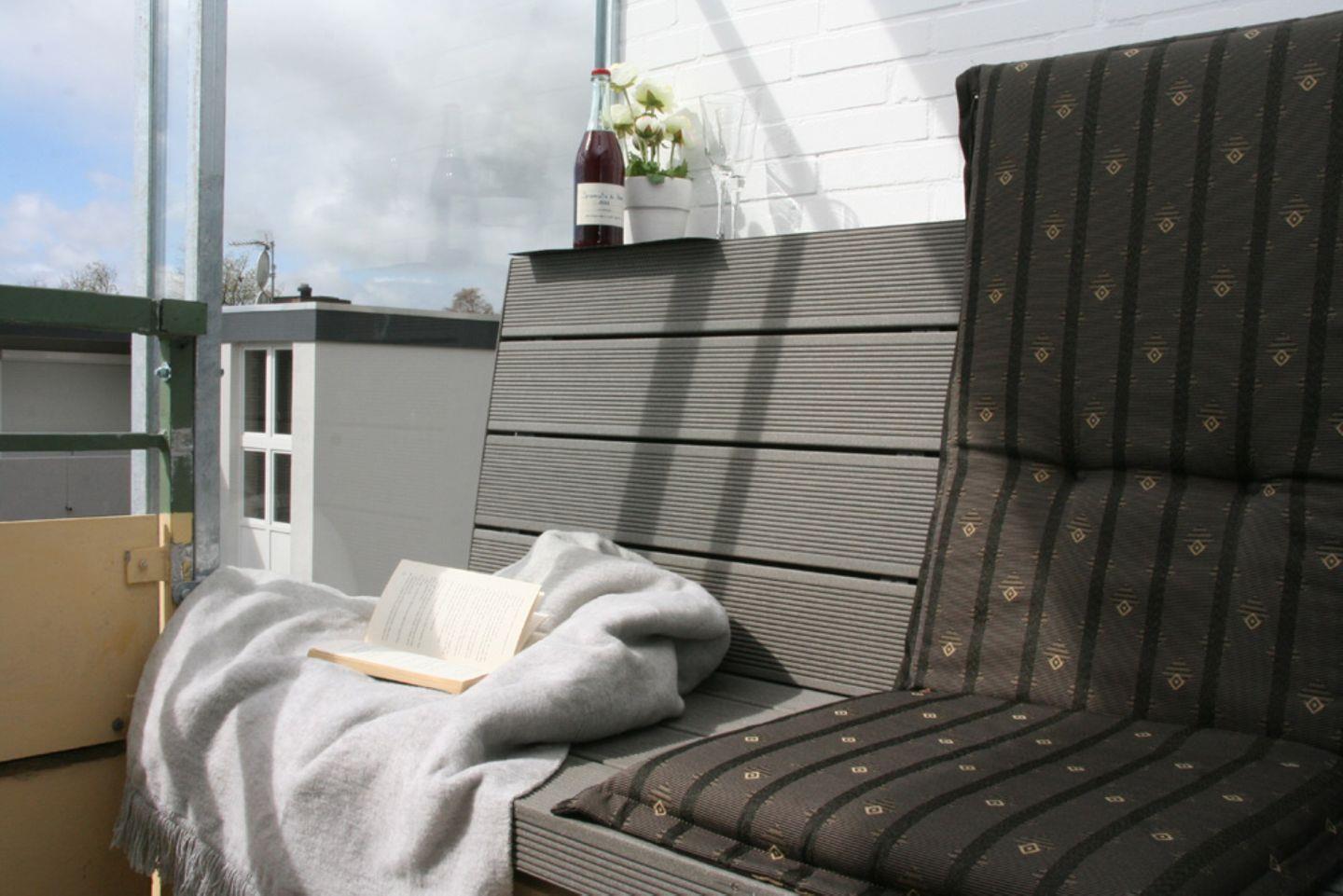 Auf dem schönen Balkon finden Sie Gartenmöbel. Genießen Sie hier bei Sonne morgens Ihr Frühstück.