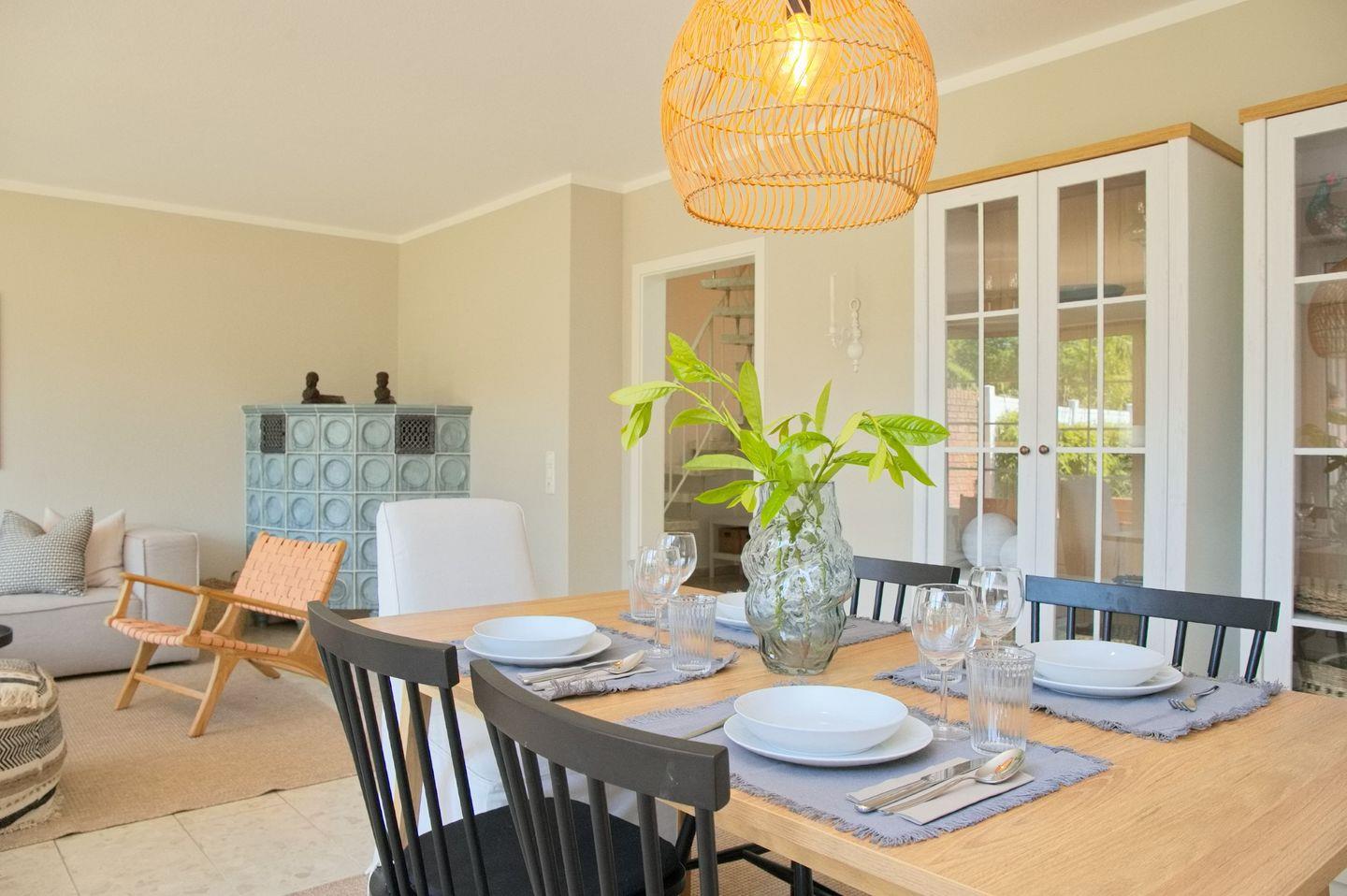 Der Einrichtungsstil des Ferienhauses vereint modernes Landhaus mit skandinavischen und küstennahen Elementen, was eine gemütliche und zeitgemäße Atmosphäre schafft. Wir laden Sie herzlich ein, in diesem Ferienhaus eine entspannte und erholsame Zeit zu verbringen.