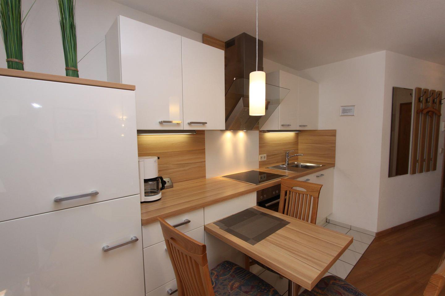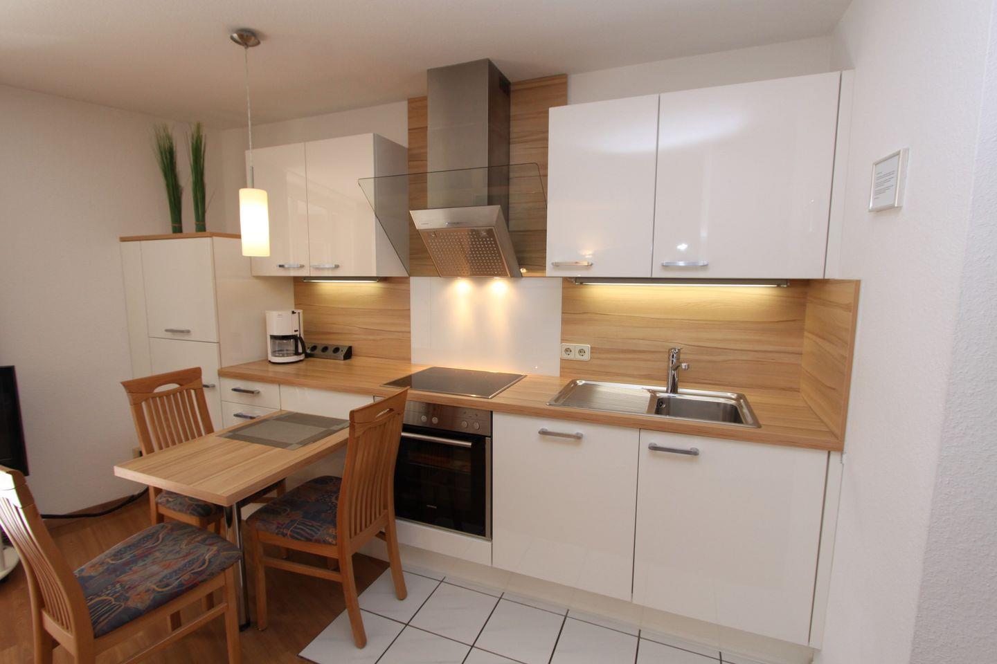 einem Ceranfeld, einem Backofen, einem Geschirrspüler, einem Kühlschrank mit