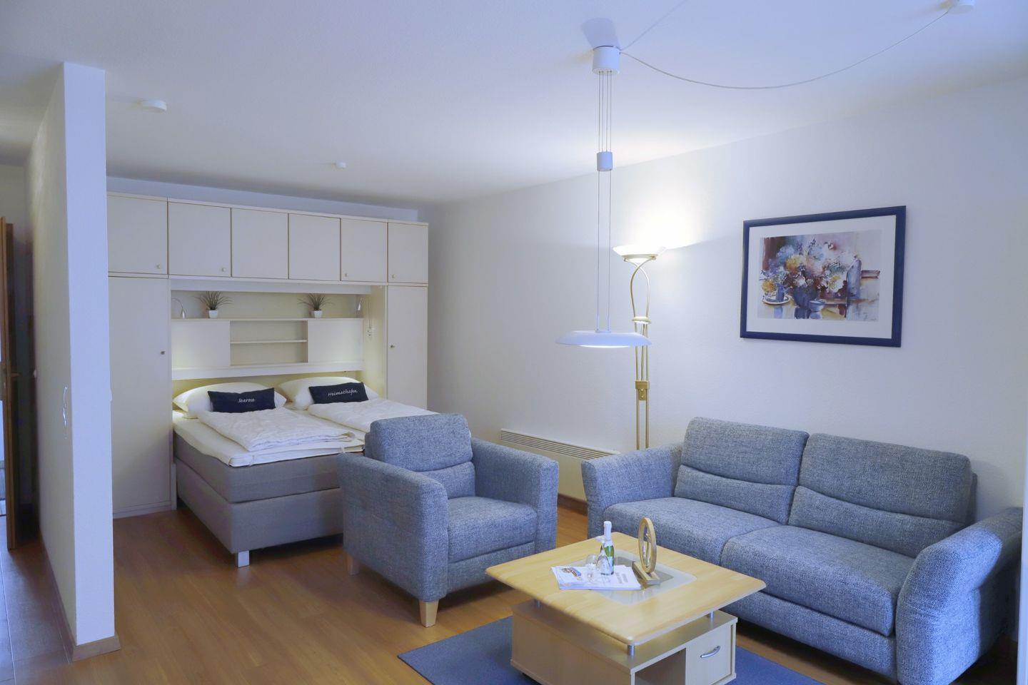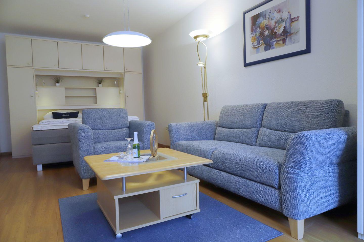 erreichen. Das gemütliche Wohnzimmer in dieser 1-Zimmer-Ferienwohnung im