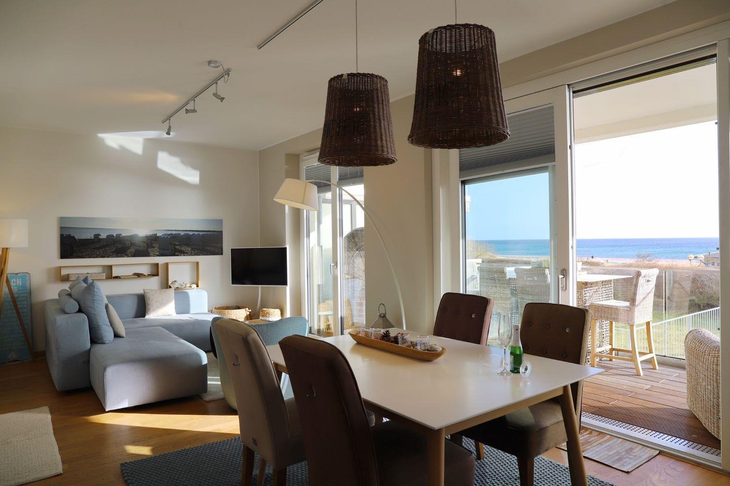 Luxus Ferienwohnung über zwei Etagen mit möblierter Terrasse und möblierten Balkon mit Strandkorb und eigenem Strandzugang, direkt an der Promenade.